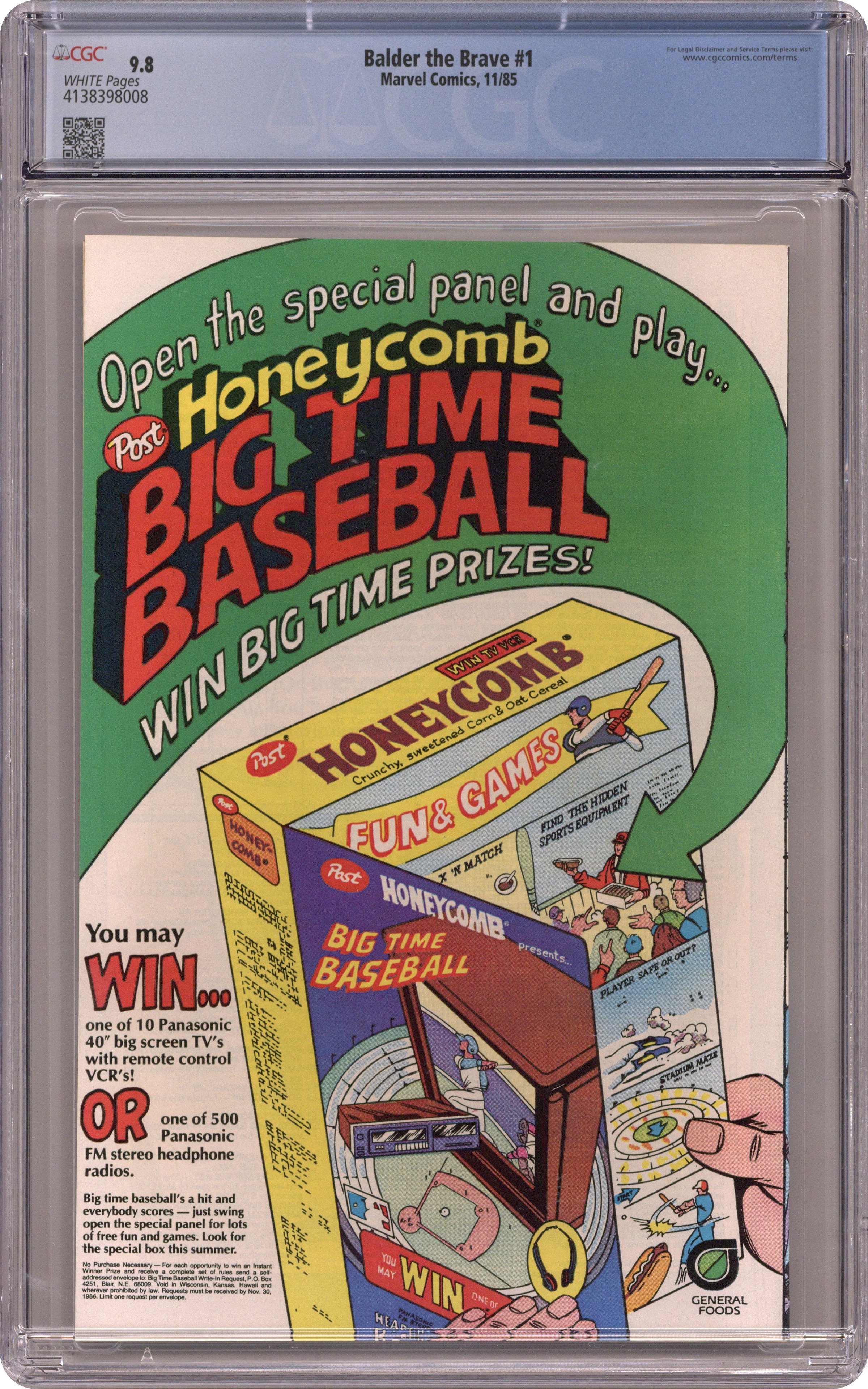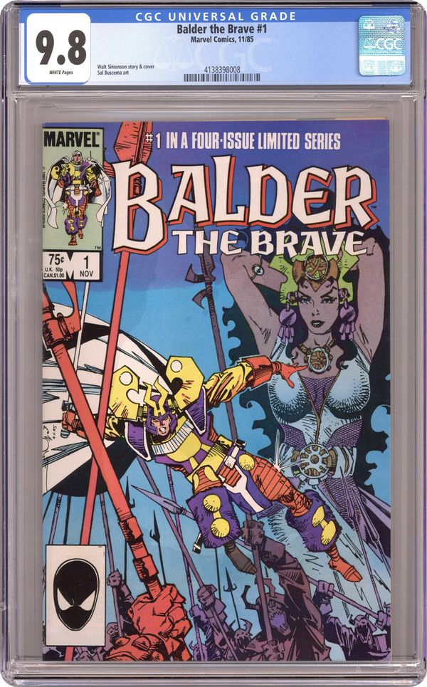 Cover art by Walt Simonson. The Sword of Frey, script by Walt Simonson, art by Sal Buscema; Balder leaves Karnilla to join Thor in battle with Hel. Story continued in Thor #360-362. Bullpen Bulletins by Bob Layton and Jim Shooter. 36 pgs. $0.75. Cover price $0.75. Grade: CGC 9.8 explanation of grade Condition: Used (collectible)