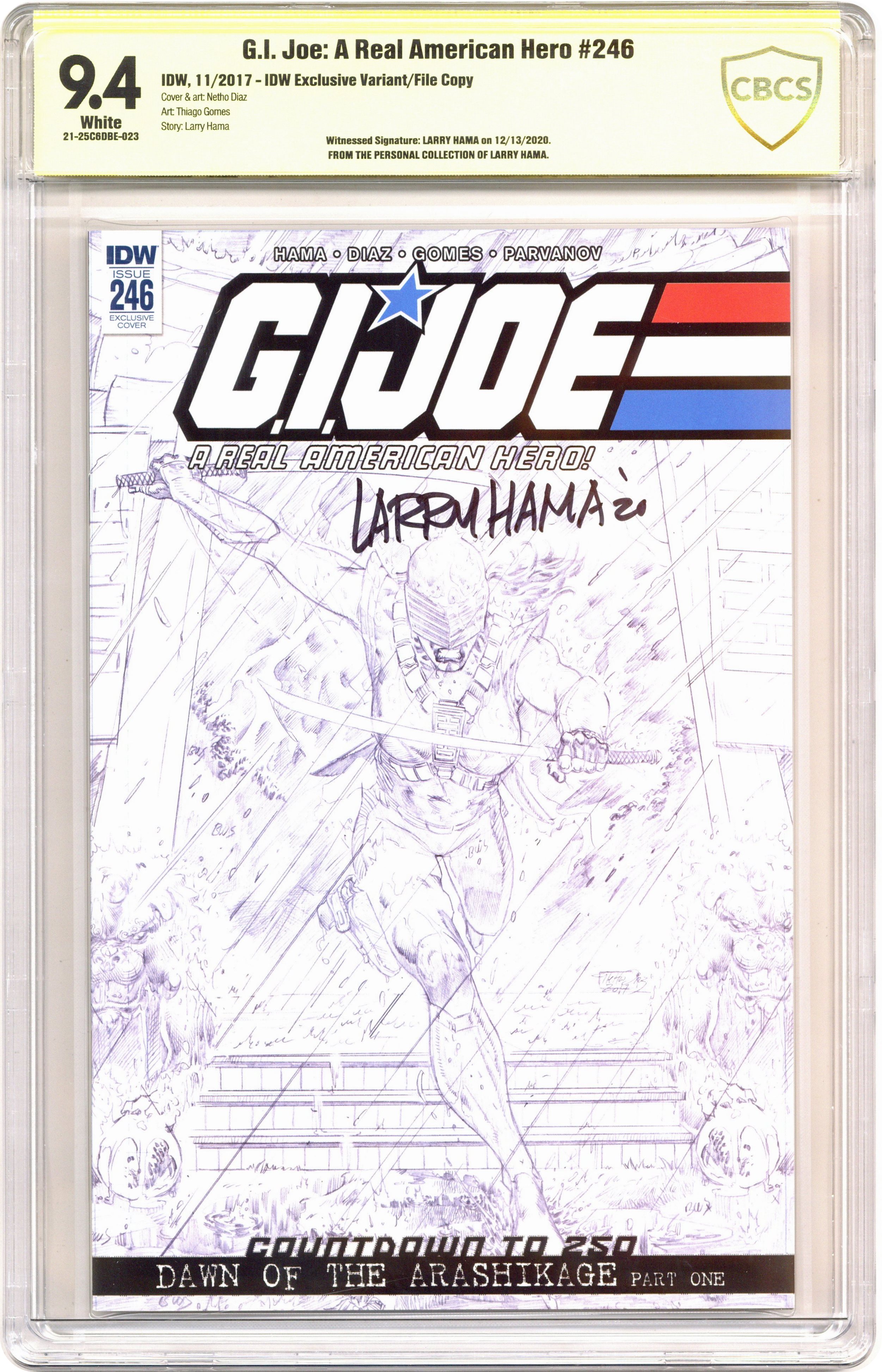 - Witnessed Signature: Larry Hama on 12/13/2020. FROM THE PERSONAL COLLECTION OF LARRY HAMA. IDW Exclusive Variant/File Copy.