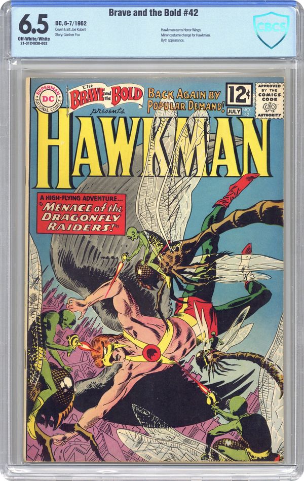Ended Apr 14 2023 Winning Bid $68 Cover by Joe Kubert. "The Menace of the Dragonfly Raiders," script by Gardner Fox, art by Joe Kubert; Hawkman and Hawkgirl return to Thanagar, where Byth has escaped from prison and replicated his powers in the others of his gang; The Hawks use police techniques they learned on Earth to capture the criminals. Your Pass to New Worlds! public service announcement about libraries, script by Jack Schiff, art by Sheldon Moldoff. Letters to the editor from writers Don Thompson and Jerry Bails. 36 Pages, Full Color. Cover price $0.12. Grade: CBCS 6.5 explanation of grade Condition: Used (collectible)