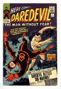 "In Mortal Combat with Sub-Mariner!" Written by Stan Lee. Art and cover by Wally Wood. Namor hires Franklin and Murdock to sue the human race on his behalf. When this doesn't work, he gets himself arrested so he can have his day in court. Realizing humanity won't listen, the Sub-Mariner goes on a rampage which brings Daredevil into the (hopeless) fray. Namor returns to the sea out of respect for DD and to stop Krang from taking over Atlantis. Sub-Mariner/Daredevil pin-up by Wood. Note: First appearance of Daredevil's red costume. 36 pages, full color. Cover price $0.12. Grade: VG+ 4.5 explanation of grade Condition: Used (collectible)