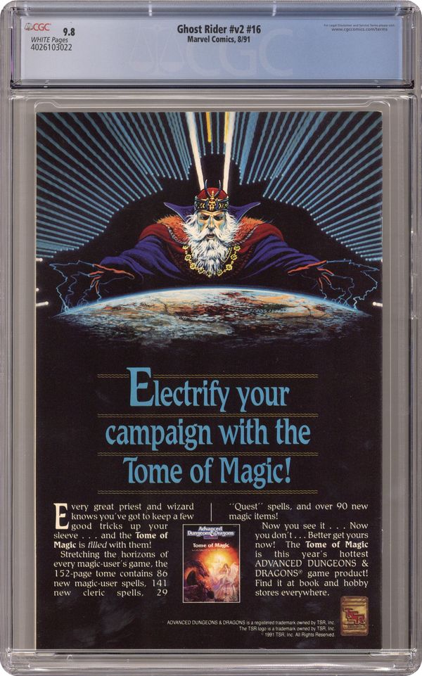 Part 3 of 4 - "Changes!" Guest-starring Spider-Man. Written by Howard Mackie. Art by Mark Texeira. NOTE: This story picks up after the events of Spider-Man (1990) #7. Recent events have pushed the Ghost Rider, especially his host Danny Ketch, to his limits. So, can a weakened Rider and Johnny Blaze stop the mad Hobgoblin? Over Spider-Mans dead body. But why would Spidey stand in their way? The answer may surprise you. 32 pages, FC. Cover price $1.75. Grade: CGC 9.8 explanation of grade Condition: Used (collectible)