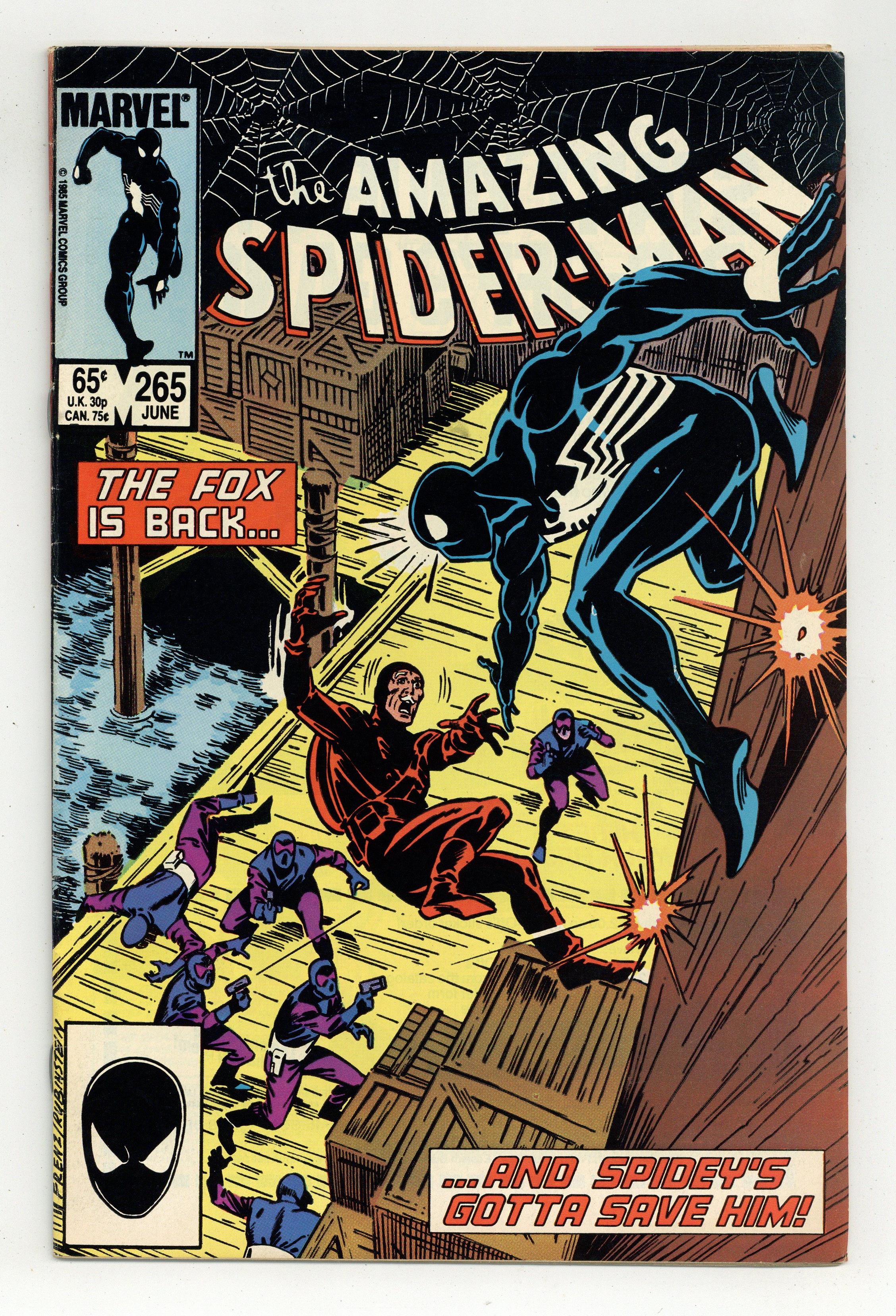 First printing. Direct Edition. First appearance of Silver Sable. Script by Tom DeFalco. Pencils by Ron Frenz. Inks by Joe Rubinstein. Cover by Ron Frenz and Joe Rubinstein. "After the Fox!". The Black Fox is on the run! But it's not the Spectacular Spider-Man who's chasing him! It's Silver Sable! An adventurer for hire from the European country of Symkaria! Silver Sable and her Wild Pack pursue the fox through the streets of Manhattan and then later corner him on the waterfront! However, the aging international jewel thief has a wall-crawling guardian angel! Down on the docks, the sparks fly as the web-slinger gives Silver Sable a lesson in diplomacy...superhero-style! Second appearance of the Black Fox. Cameo appearances by Aunt May, Mary Jane Watson, Harry Osborn, Liz Osborn, and Normie Osborn. (Notes: Silver Sable appears next in Amazing Spider-Man 279. The Black Fox returns in Web of Spider-Man 14. There is a second printing of this issue published in 1992. The second printing features a gray cover and a yellow dog ear touting the first appearance of Silver Sable. This story was also reprinted in Marvel Tales 277.) 36 pgs. Cover price $0.65. Grade: FN- 5.5 explanation of grade Condition: Used (collectible)
