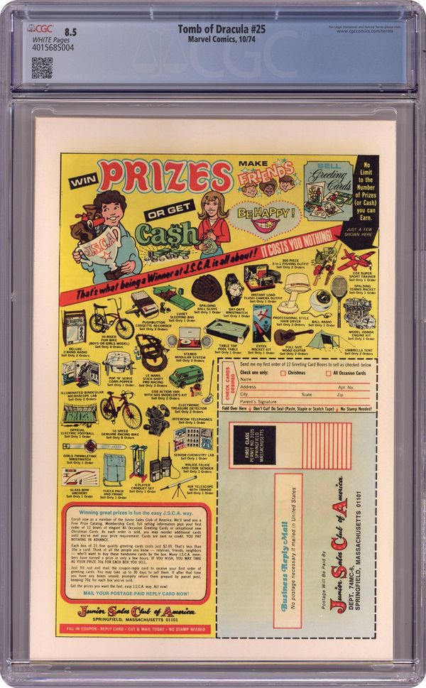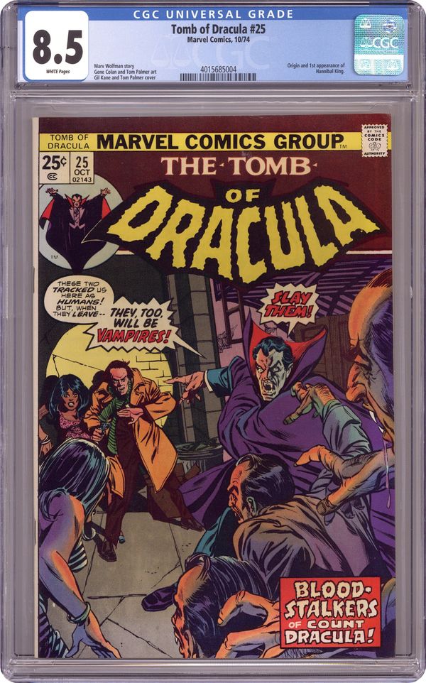 1st printing - "Night of the Blood Stalker!" Written by Marv Wolfman. Art by Gene Colan and Tom Palmer. Meet private investigator Hannibal King. He specializes in the macabre and the unexplainable. He's the best there is at his job. That may be because Hannibal King also has a macabre secret of his own. 32 pages, FC. NOTE: 1st appearance of Hannibal King. There is a 1994 replica edition with Stridex Ad on back cover. Cover price $0.25. Grade: CGC 8.5 explanation of grade Condition: Used (collectible)