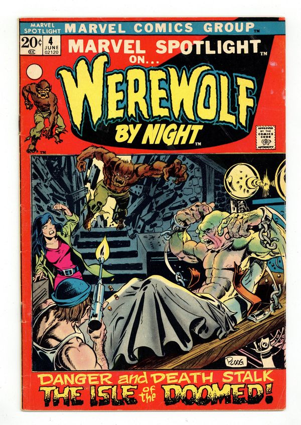 Cover art by Mike Ploog. Island of the Damned!, script by Gerry Conway, art by Mike Ploog; Jack Russell travels to an island while searching for the Darkhold; While there he is turned into stone. Continued in Werewolf By Night #1. 36 pages, full color. Cover price $0.20. Grade: VG 4.0 explanation of grade Condition: Used (collectible)