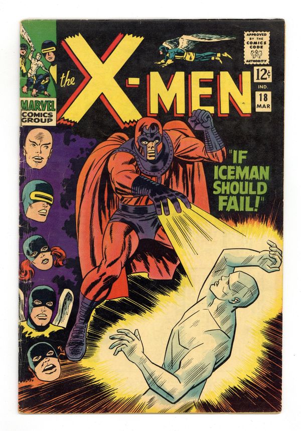 If Iceman Should Fail--!, script by Stan Lee, pencils by Werner Roth [as Jay Gavin], inks by Dick Ayers; With the rest of the X-Men captured in a lead balloon, it is up to an injured Iceman to battle Magneto on his own; Once the X-Men escape Magento's trap, Professor X calls the Stranger who arrives on earth to collect his former captive. 36 pgs. $0.12. Cover price $0.12. Grade: VG/FN 5.0 explanation of grade Condition: Used (collectible)