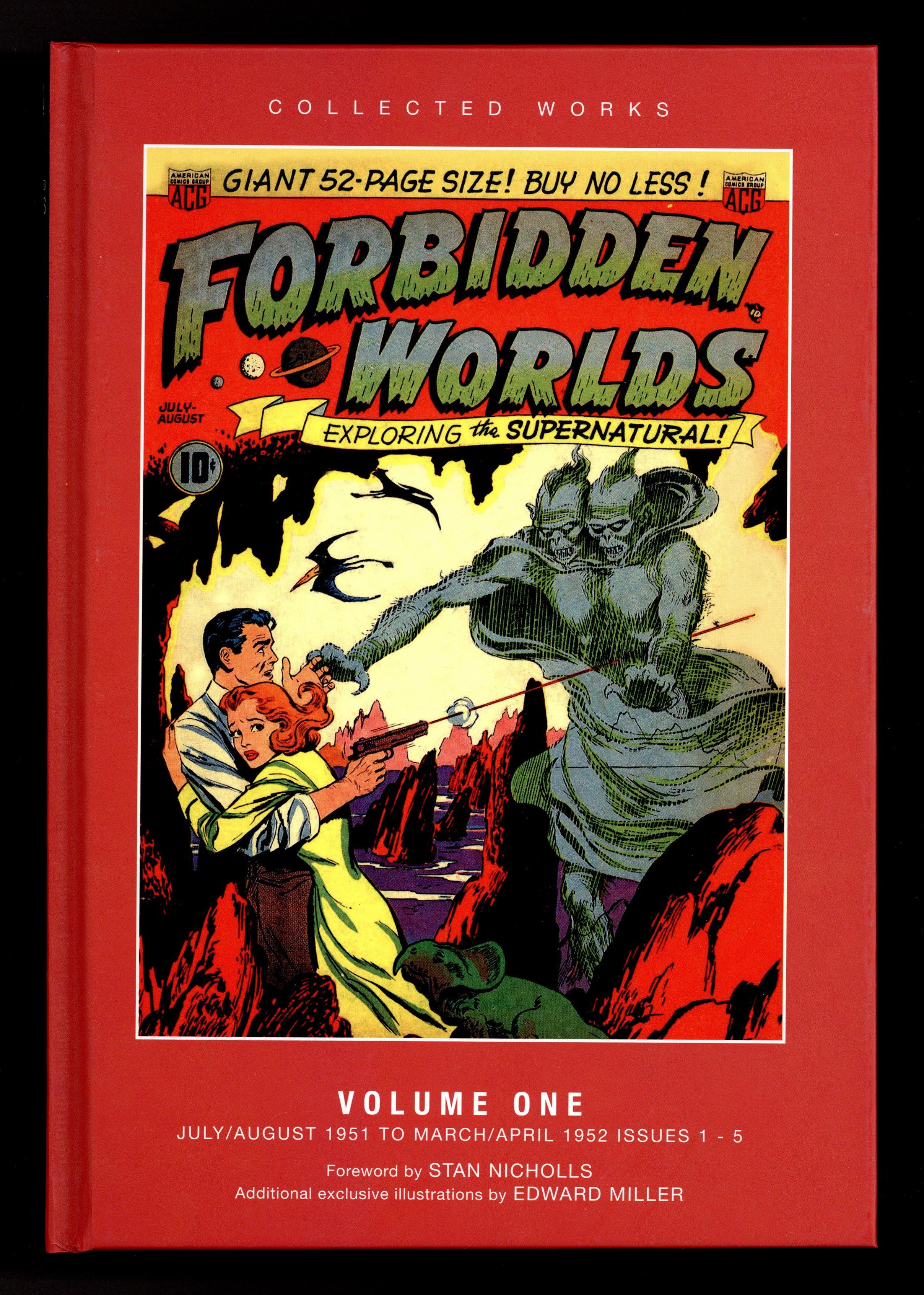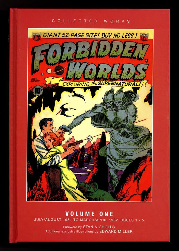 Volume 1 - 1st printing. Written by Stan Nicholls. Art by Frank Frazetta. Tales exploring the supernatural from issues #1-5 from July/August 1951 to March/April 1952 of the ACG classic Forbidden Worlds. Featuring an essay by British author Stan Nicholls, this first volume has been meticulously compiled from the original source material and painstakingly digitally restored. This slipcase edition features a re-imagined cover by Edward Miller of issue 5 as a limited edition print signed by Edward Miller, Stan Nicholls, and PS Publishing founder Peter Crowther. Limited to just 300 copies. Hardcover(Slipcased), 7-in. x 10-in., 288 pages, full color. Cover price $119.99. Grade: NM 9.4 explanation of grade Condition: Used (collectible)