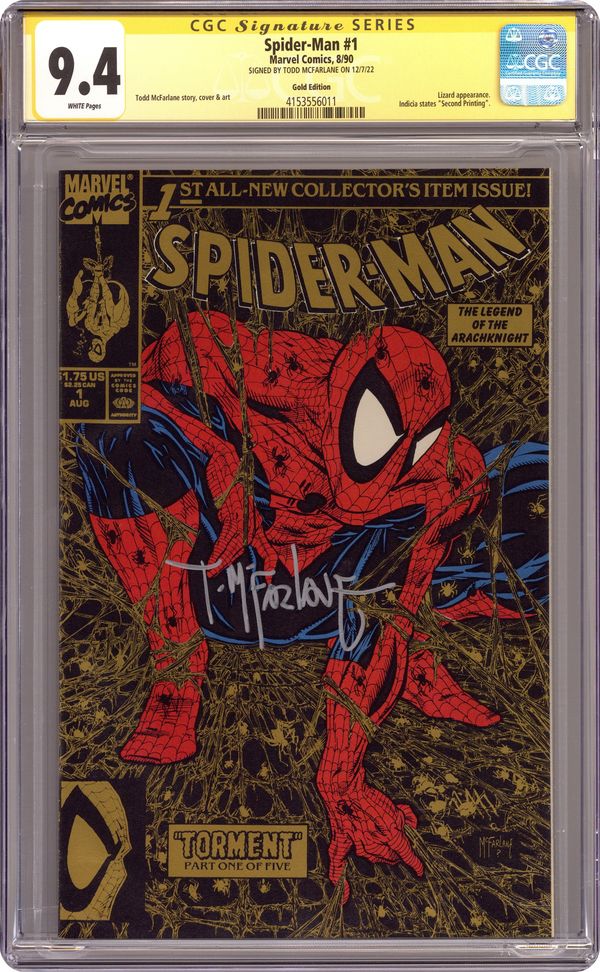 2nd Printing, Black Cover with Gold Webbing. 2nd Printing, (Spidey's head in UPC box. This is NOT barcode version). Cover price $1.75. Grade: CGC 9.4 explanation of grade Condition: Used (collectible)