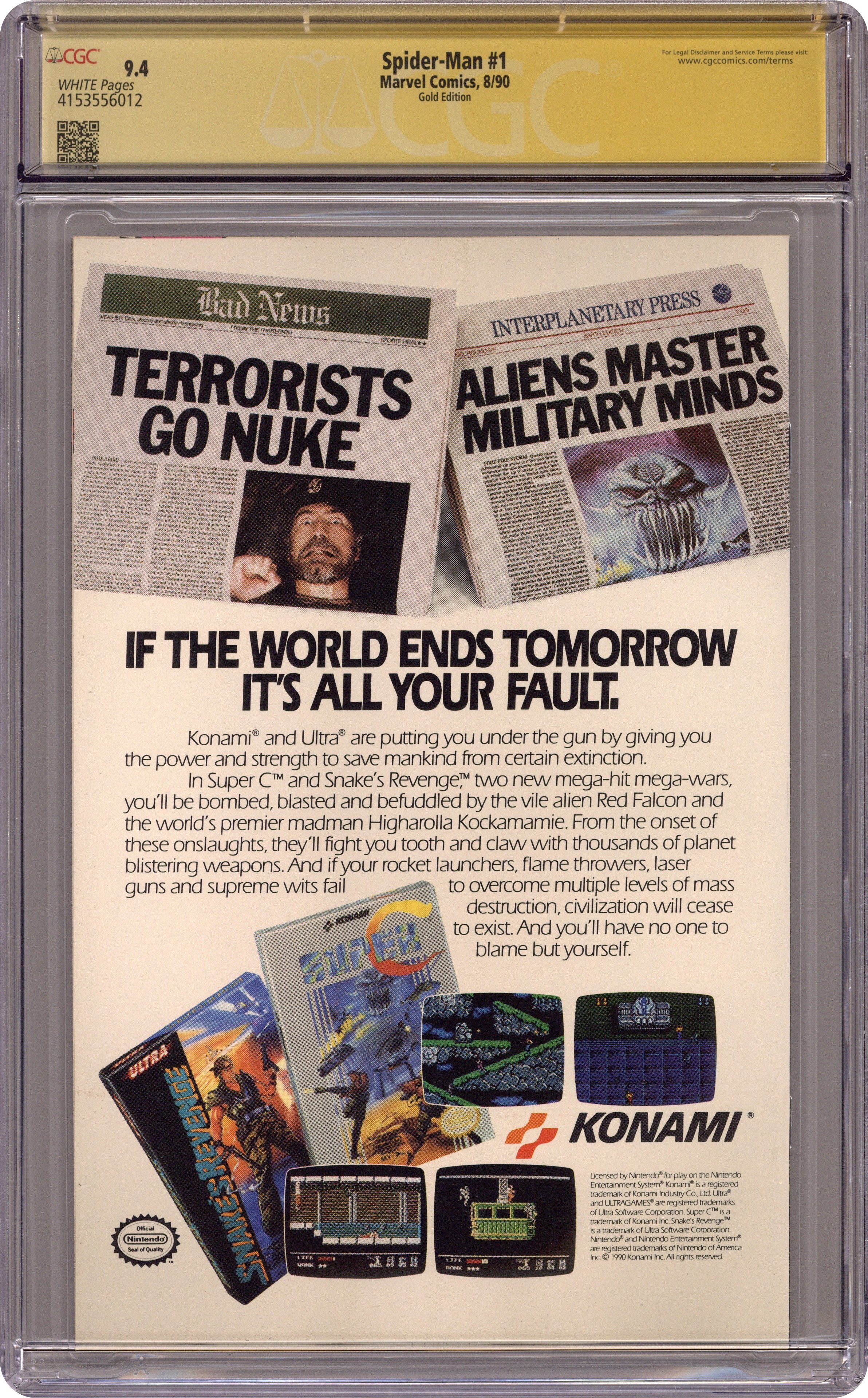 2nd Printing, Black Cover with Gold Webbing. 2nd Printing, (Spidey's head in UPC box. This is NOT barcode version). Cover price $1.75. Grade: CGC 9.4 explanation of grade Condition: Used (collectible)