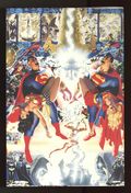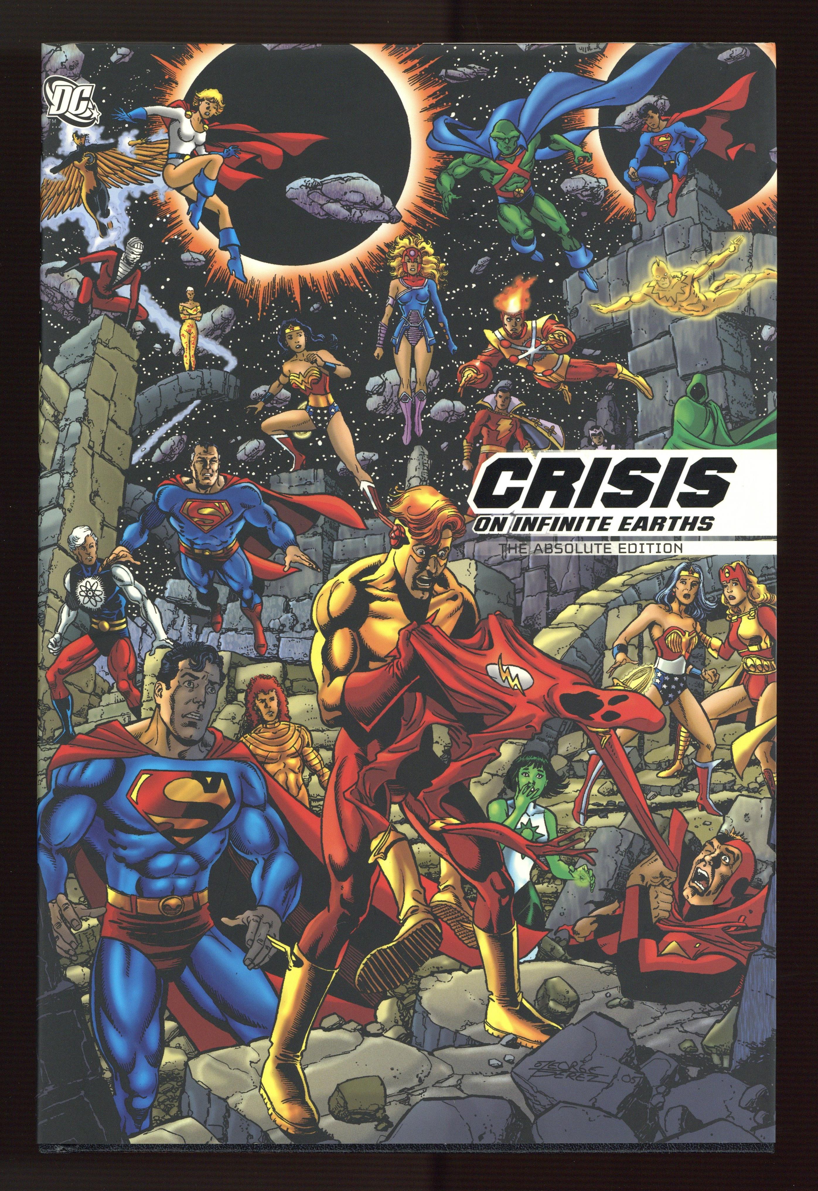 1st Edition - 2nd and Later printings. Written by Marv Wolfman. Art by George Pérez, Dick Giordano, Jerry Ordway, and Mike DeCarlo. Cover by Pérez. Worlds lived. Worlds died. And the DC Universe was never the same! In 1985, DC Comics dramatically altered comics' original universe with CRISIS ON INFINITE EARTHS, a 12-issue series that rocked the comics community, tragically dooming some of DC's most beloved characters and drastically altering others. Written by Marv Wolfman and penciled by George Pérez, with inks by Dick Giordano, Jerry Ordway and Mike DeCarlo, CRISIS ON INFINITE EARTHS finds the alternate worlds that once were a hallmark of the DC Universe under siege by a mysterious force powerful enough to wipe out the lives of billions. Now this landmark series gets the star treatment in CRISIS ON INFINITE EARTHS: THE ABSOLUTE EDITION - an oversized slipcased set containing two hardcover books. The 368-page Book One includes the full 12-issue maxiseries (which was painstakingly restored and meticulously recolored in 1998), with an introduction by Marv Wolfman, afterword by Dick Giordano, and creator bios. George Pérez provides all-new art for the dustjacket. (Please note that the Monitor Tapes section from issue #10 will be shot from the original art for this issue and represented in its original form.) The 96-page Book Two contains a compendium featuring the full behind-the-scenes story on the years-long making of the maxiseries complete with memos, notes, original plots and commentary from Marv Wolfman and Jerry Ordway; the Official Index to Crisis and Official Index to Crisis Crossovers being reprinted for the very first time, completely updated; a look into post-Crisis events and aftermath stories, how the Superboy/Legion conundrum was solved, and a look at the 20th anniversary of this seminal event. George Pérez provides all-new art for the dustjacket. Hardcover, 464 pages (2-books), full color. Cover price $99.99. Grade: VF/NM 9.0 explanation of grade Condition: Used (collectible)