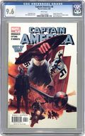 1st Full App. of Winter Soldier. Captain America Cover - Winter Soldier: Part 1.6 - Out of Time: Part 6 of 6 - Written by Ed Brubaker Pencils & Cover by Steve Epting. "OUT OF TIME" Finale Who killed the Red Skull? Who is the mystery assassin we have yet to see? This issue answers those questions and more! The hunt for the killer of the Red Skull takes a bizarre turn and Steve Rogers' life turns with it. Shattered fragments of Cap's past are called into question by new memories that keep flooding his mind. Is someone playing mind games with him, or has he been in the dark about certain events for years? Only a trip to the scene of his most devastating failure will answer that question. Part 6 (of 6). 32 PGS./Marvel PSR ...$2.99 Cover price $2.99. Grade: CGC 9.6 explanation of grade Condition: Used (collectible)