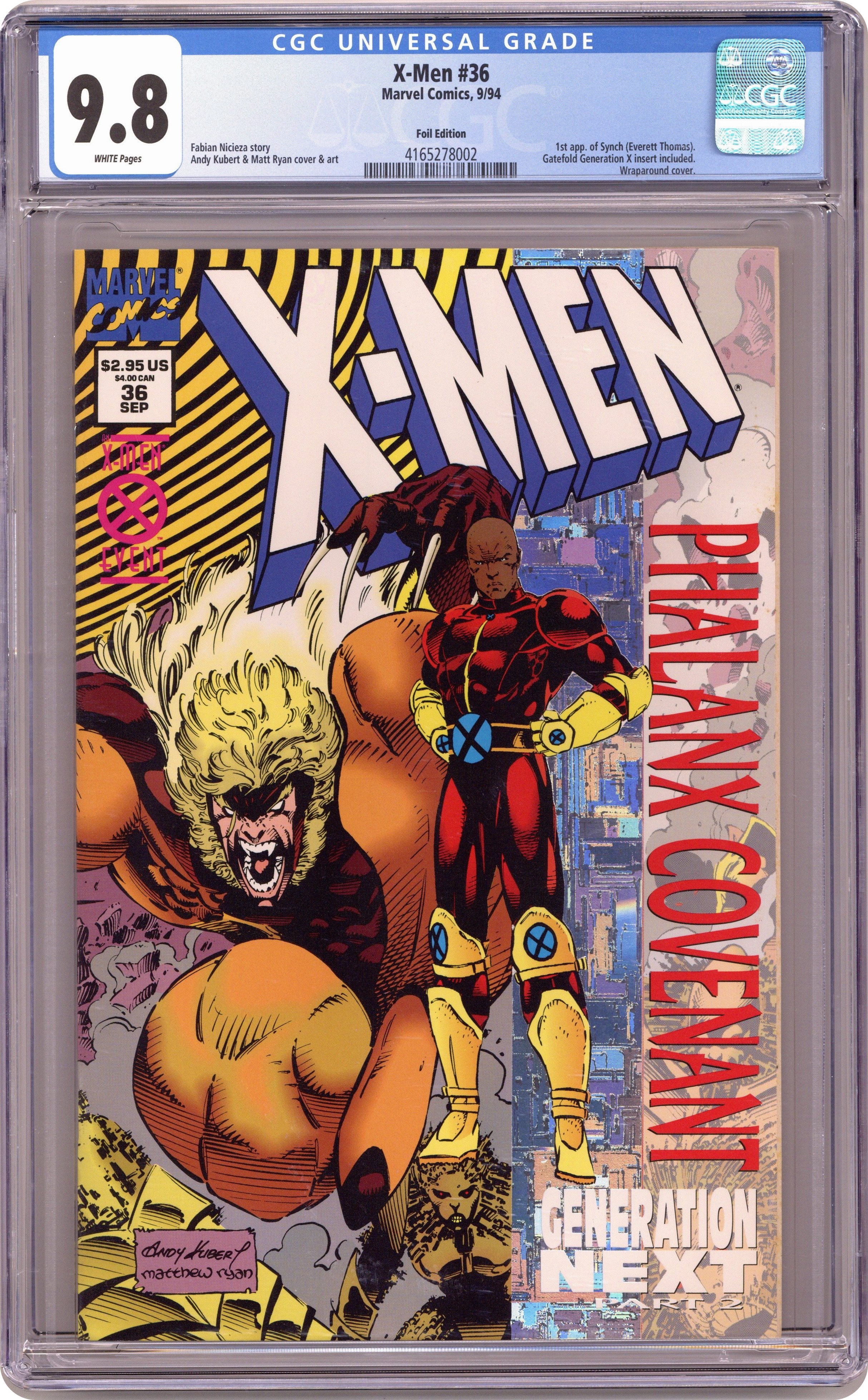Holographic edition. Direct Edition. Wraparound cardstock cover. Cover pencils by Andy Kubert, inks by Matt Ryan. The Phalanx Covenant Book One Generation Next Part 2: Drop the Leash, script by Fabian Nicieza, pencils by Andy Kubert, inks by Matt Ryan; The X-Men try to save the next generation of mutants from being assimilated by the Phalanx; Cont. from Uncanny X-Men #316; Cont. in Uncanny X-Men #317. 36 pgs. Cover price $2.95. Grade: CGC 9.8 explanation of grade Condition: Used (collectible)