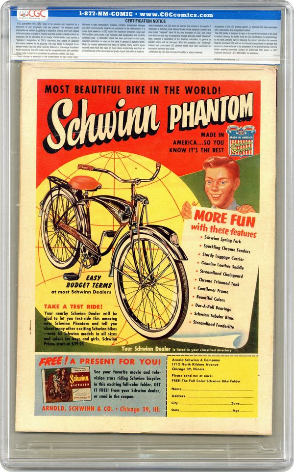 Ended Mar 27 2023 Winning Bid $71 Cover pencils by Marty Taras. Stories by unknown. Art by Marty Taras and unknown. Baby Huey stars in: "Wishful Thinking"; "Quite a Movie"; "Penny Wise"; and untitled 1-pager. Also in this issue: Herman and Katnip in "Herman's Fairy God-Mouse"; untitled Buzzy 2-pager; 1-page text story "Trick Dog"; 1-page text story "Dog Eat Dog"; and 1-page text story "Rodeo Rider"! Characters in this issue: Baby Huey; Huey's mama; Matilda; Huey's papa; the Fox; Herman; Katnip; Buzzy the Crow. 36 pages, full color. Cover price $0.10. Grade: CGC 4.5 explanation of grade Condition: Used (collectible)