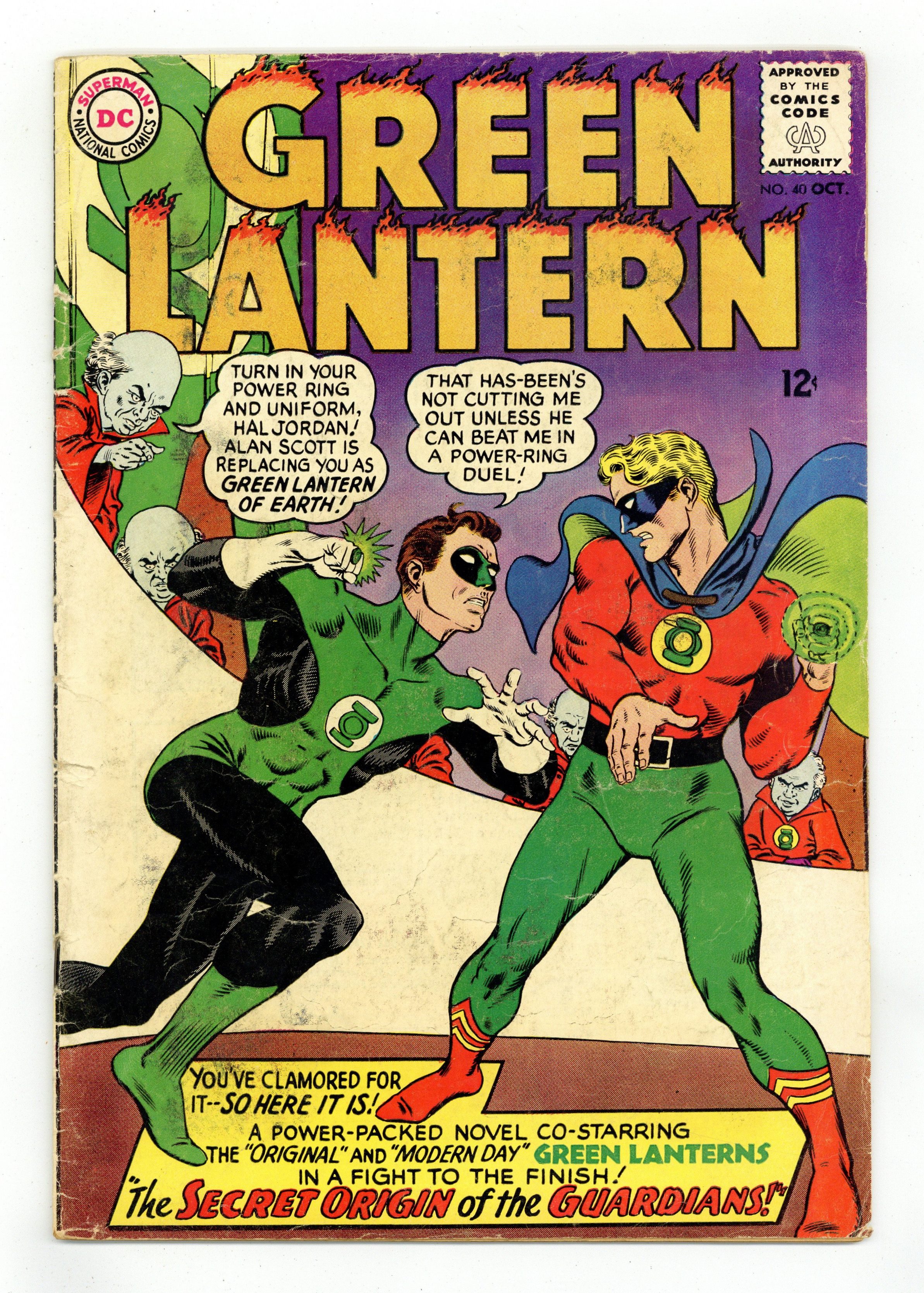 First appearance of the Golden Age Green Lantern in the Silver Age. Cover pencils by Gil Kane, inks by Murphy Anderson. The Secret Origin of the Guardians!, script by John Broome, pencils by Gil Kane, inks by Sid Greene; Hal Jordan and Alan Scott team up to fight the Guardians oldest adversary... Krona. Are You a Litter-Bug? public service announcement starring Little Pete, art by Henry Boltinoff. Rocky and Bullwinkle Cheerios ad. 36 pgs. $0.12. Cover price $0.12. Grade: GD+ 2.5 explanation of grade Condition: Used (collectible)
