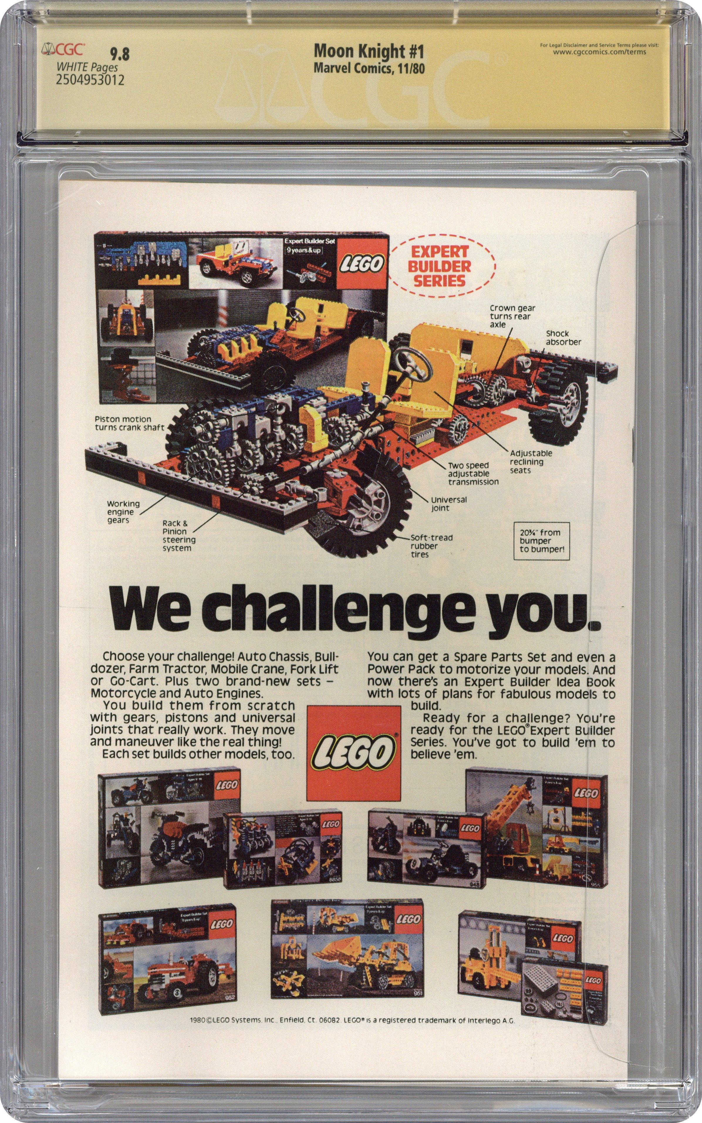 Direct Edition. "The Macabre Moon Knight!" Written by Doug Moench. Art by Bill Sienkiewicz. Mercenary, Wall Street wizard, a street smart cabbie, masked-avenger - Marc Spector is all of these things and more. Nothing before could have possibly prepared you for the strange world of Moon Knight! 32 pages, FC. NOTE: 1st appearance of Bushman. Cover price $0.50. Grade: CGC 9.8 explanation of grade Condition: Used (collectible)