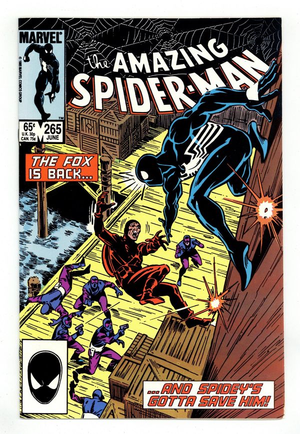 First printing. Direct Edition. First appearance of Silver Sable. Script by Tom DeFalco. Pencils by Ron Frenz. Inks by Joe Rubinstein. Cover by Ron Frenz and Joe Rubinstein. "After the Fox!". The Black Fox is on the run! But it's not the Spectacular Spider-Man who's chasing him! It's Silver Sable! An adventurer for hire from the European country of Symkaria! Silver Sable and her Wild Pack pursue the fox through the streets of Manhattan and then later corner him on the waterfront! However, the aging international jewel thief has a wall-crawling guardian angel! Down on the docks, the sparks fly as the web-slinger gives Silver Sable a lesson in diplomacy...superhero-style! Second appearance of the Black Fox. Cameo appearances by Aunt May, Mary Jane Watson, Harry Osborn, Liz Osborn, and Normie Osborn. (Notes: Silver Sable appears next in Amazing Spider-Man 279. The Black Fox returns in Web of Spider-Man 14. There is a second printing of this issue published in 1992. The second printing features a gray cover and a yellow dog ear touting the first appearance of Silver Sable. This story was also reprinted in Marvel Tales 277.) 36 pgs. Cover price $0.65. Grade: FN/VF 7.0 explanation of grade Condition: Used (collectible)