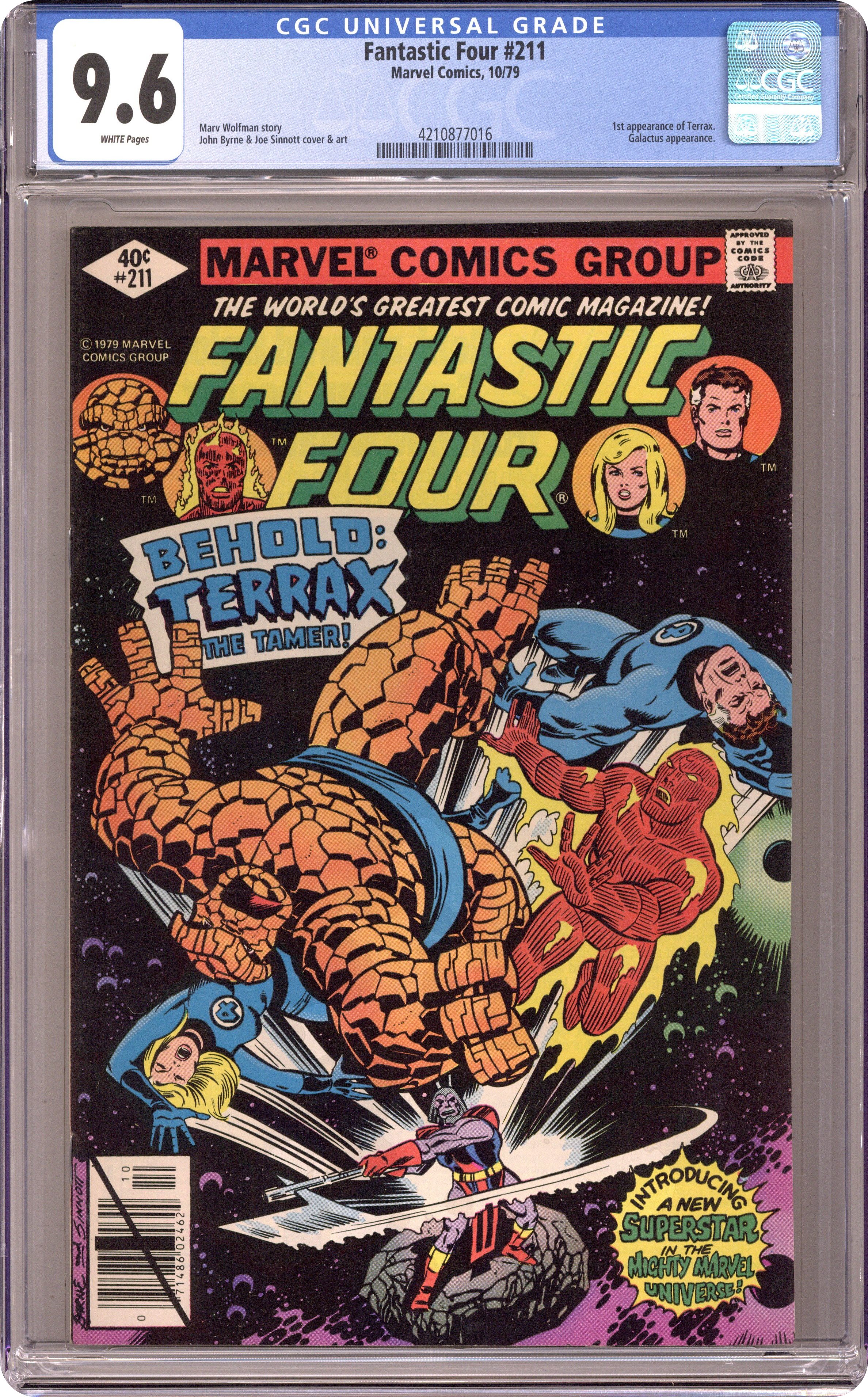 Ended Apr 18 2023 Winning Bid $106 Direct Edition. 1st appearance of Terrax the Tamer - "If This Be Terrax" Written by Marv Wolfman. Pencils by John Byrne. Inks by Joe Sinnott. Cover by John Byrne and Joe Sinnott. Galactus sends the Fantastic Four to an alien plant to capture its tyrannical ruler named Tyros! Can the three aging members of the FF plus the Human Torch muster the strength to defeat Tyros? Cameo appearance by the Watcher and flashback appearances by the Silver Surfer, Air Walker, and Firelord. Note: First appearance of Terrax the Tamer. 36 pgs. Cover price $0.40. Grade: CGC 9.6 explanation of grade Condition: Used (collectible)