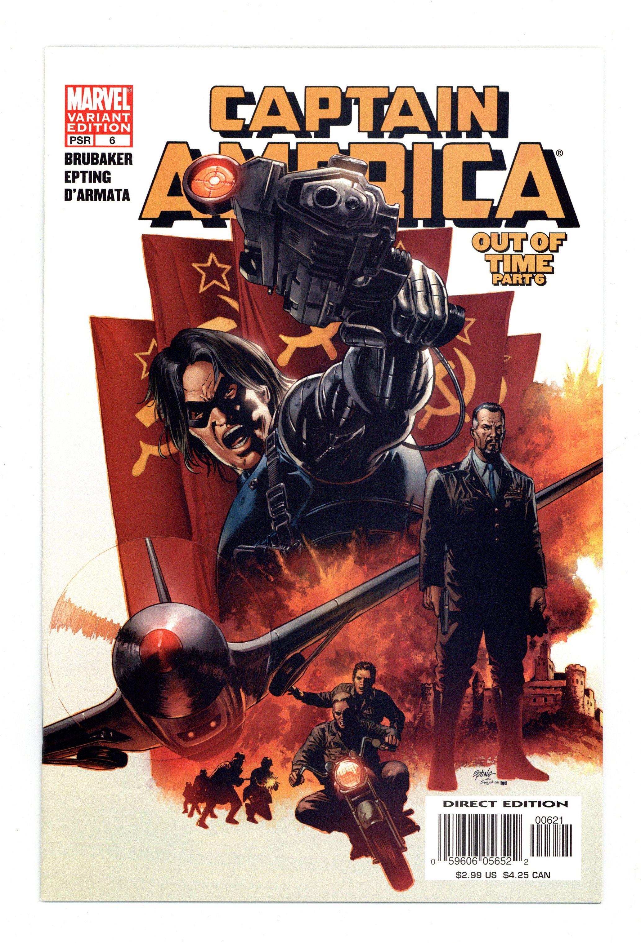 1st Full App. of Winter Soldier. Winter Soldier Cover - Winter Soldier: Part 1.6 - Out of Time: Part 6 of 6 - Written by Ed Brubaker. Pencils & Cover by Steve Epting. "OUT OF TIME" Finale Who killed the Red Skull? Who is the mystery assassin we have yet to see? This issue answers those questions and more! The hunt for the killer of the Red Skull takes a bizarre turn and Steve Rogers' life turns with it. Shattered fragments of Cap's past are called into question by new memories that keep flooding his mind. Is someone playing mind games with him, or has he been in the dark about certain events for years? Only a trip to the scene of his most devastating failure will answer that question. Part 6 (of 6). 32 PGS./Marvel PSR ...$2.99 Cover price $2.99. Grade: VF+ 8.5 explanation of grade Condition: Used (collectible)