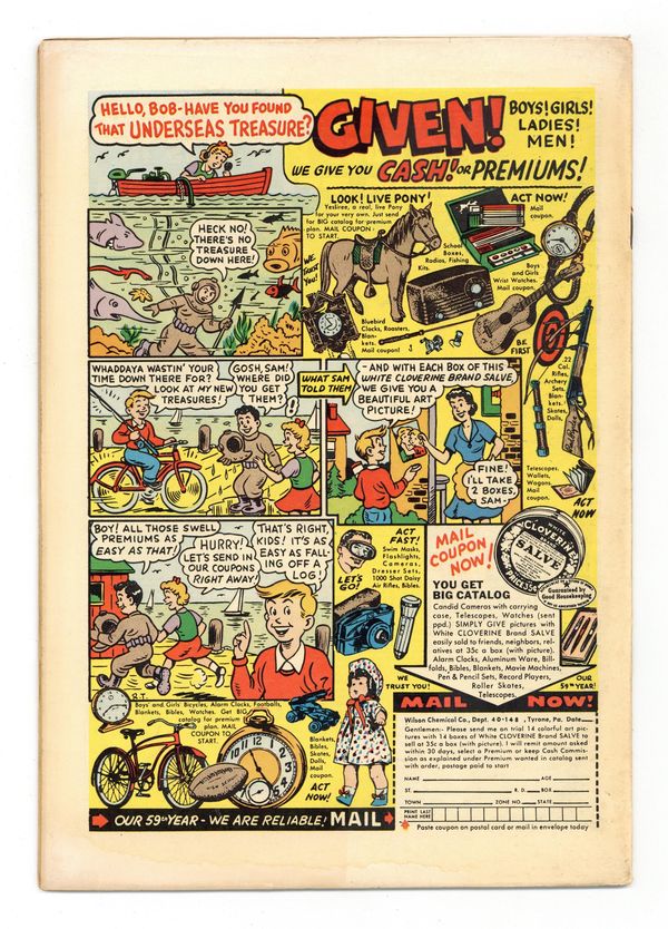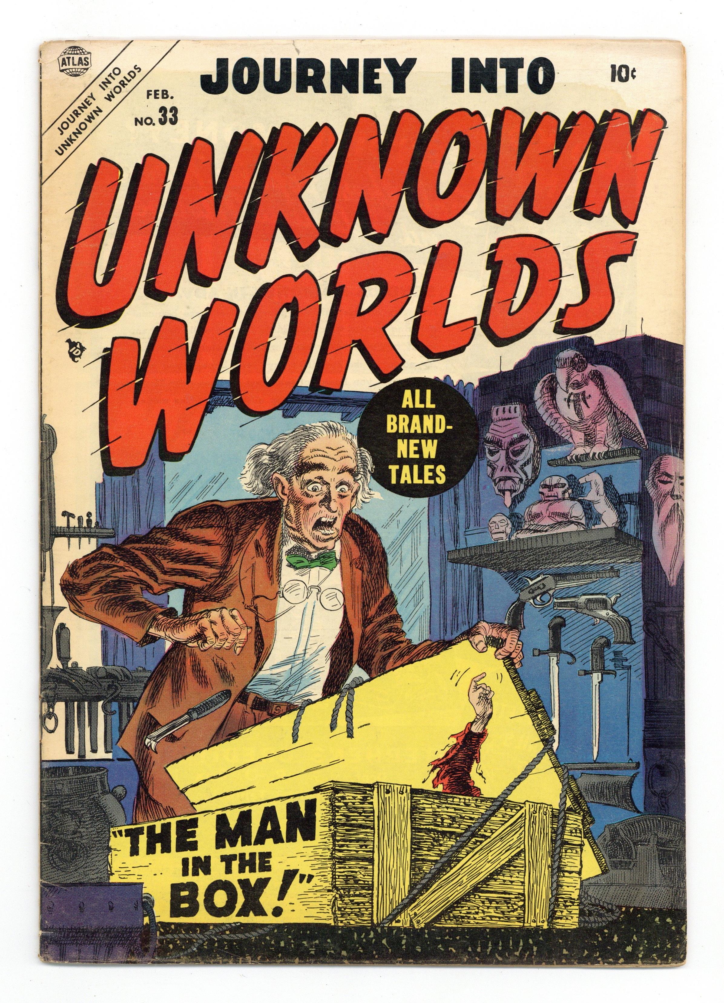 Cover art by Carl Burgos. The Man in the Box!, pencils by Bill Benulis, inks by Jack Abel; The story of a little (roughly inch tall) man who lives in a little green box and comes out every night to do a good deed. The Little Man text story. Bomb Blast, art by Manny Stallman; A sub-marine crew thinks they have discovered the fabled land of Atlantis, only to discover that they have travelled in time. The Pen Pal, art by Lou Cameron. Those Who Listen, art by Howie Post. Half-Human, art by Bob Forgione. 36 pgs. $0.10. Cover price $0.10. Grade: VG- 3.5 explanation of grade Condition: Used (collectible)