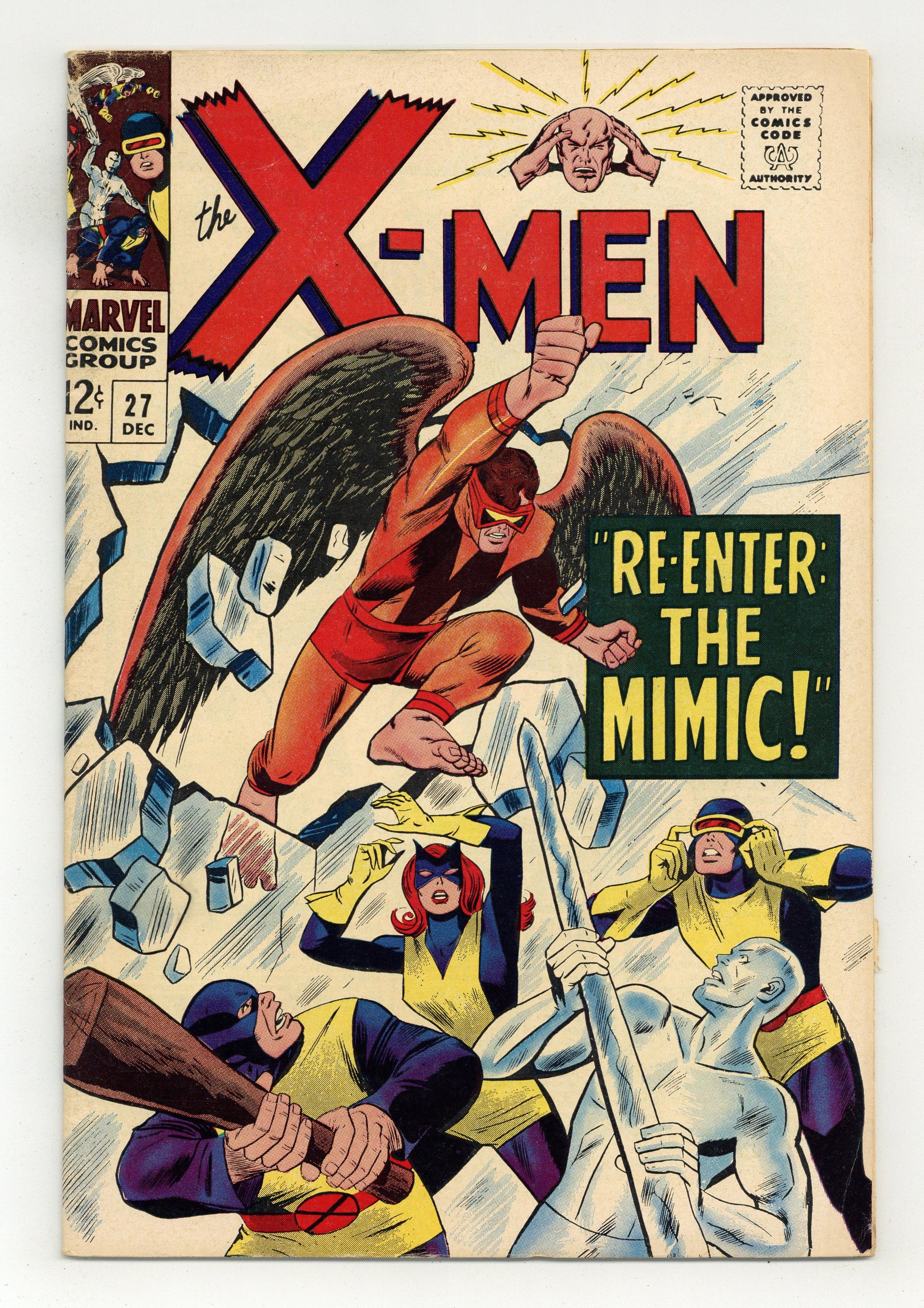 Cover pencils by Werner Roth, inks by Dick Ayers. Re-Enter: The Mimic!, script by Roy Thomas, pencils by Werner Roth, inks by Dick Ayers; Angel rests in the wake of getting hit with Cyclops' optic blast; Mimic recovers his powers and memoriesl X-Men battle the Puppet Master; Cameos by Spider-Man and the Fantastic Four.. 36 pgs. $0.12. Cover price $0.12. Grade: VG/FN 5.0 explanation of grade Condition: Used (collectible)