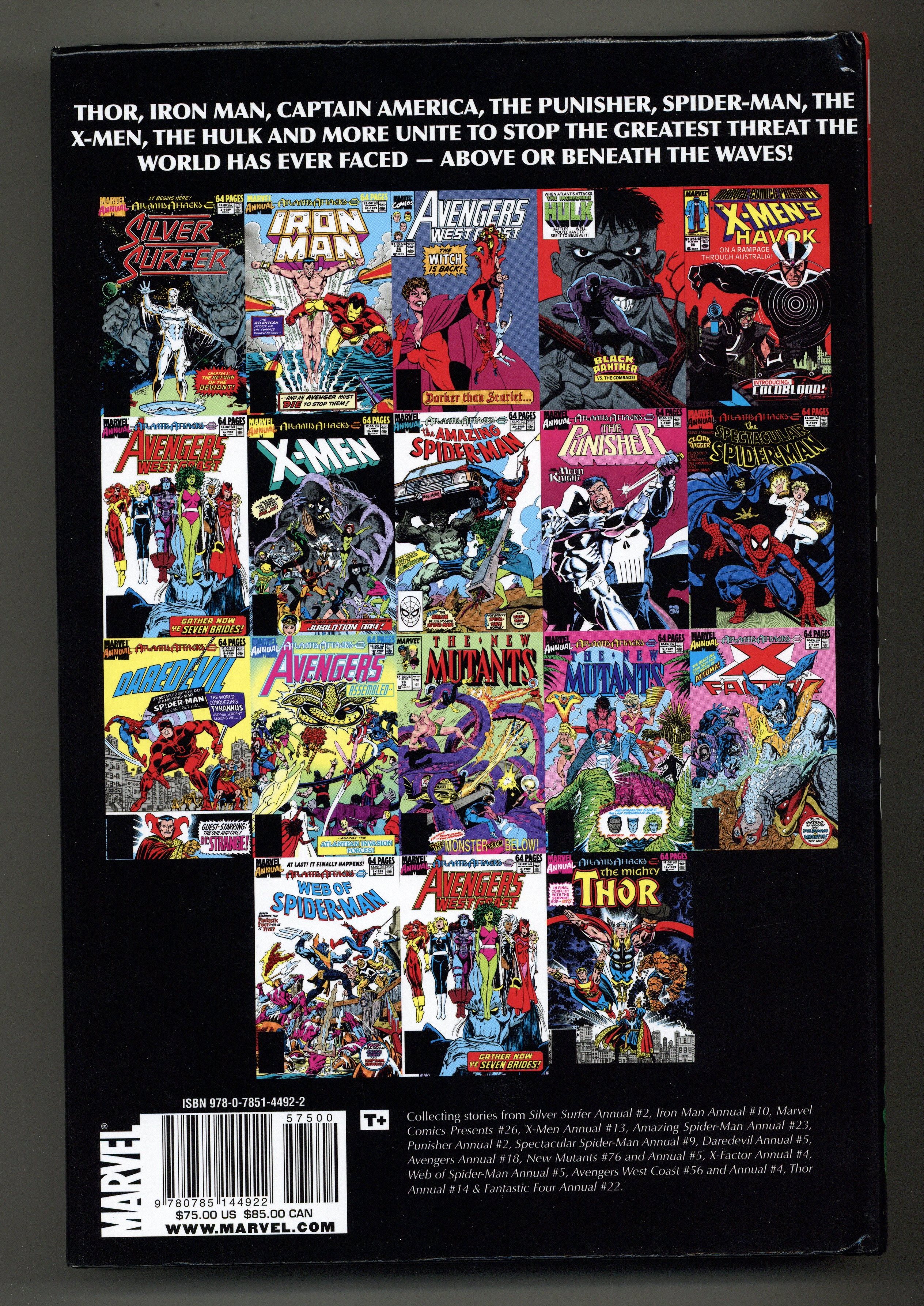 1st printing. Collects Silver Surfer Annual (1987-1998) 2, Iron Man Annual (1968-1996) #10, Marvel Comics Presents (1988-1995 1st Series) #26, Uncanny X-Men Annual (1963-2001) #13, Amazing Spider-Man Annual (1963-1998) #23, Punisher Annual (1987-1994) #2, Spectacular Spider-Man Annual (1976-1998 1st Series) #9, Daredevil Annual (1964-1998 1st Series) #4B (mis-numbered #5 Annual), Avengers Annual (1963-1996) #18, New Mutants (1983-1991 1st Series) #76, New Mutants Annual (1983-1991) #5, X-Factor Annual (1986-1998 1st Series) #4, Web of Spider-Man Annual (1985-1994) #5, Avengers West Coast (1985-1994) #56, Avengers West Coast Annual (1986-1993) #4, Thor Annual (1962-1996) #14 and Fantastic Four Annual (1961-1996) #22.