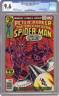 1st Printing. "The Blind Leading The Blind" Guest-starring Daredevil. Script by Bill Mantlo. Pencils by Frank Miller (1st work on Daredevil). Inks by Frank Springer. Cover by Dave Cockrum and Al Milgrom. One of the classic issues of the bronze age. Two blind super-heroes are on the trail of the Masked Marauder and the Tri-Man! Can Daredevil lead Spider-Man to the secret lair of the Maggia? The Man Without Fear and the web-slinger must hurry, because the Masked Marauder is set to launch his atomic bombdroid to destroy the city! Cameo appearances by Mary Jane Watson and Carrion. (Notes: This issue includes a one-page retelling of Daredevil's origin. This issue was reprinted in 1984 in Spider-Man and Daredevil 1, in 1993 through JC Penney Catalog identifiable by having the words "The Amazing Spider-Man" printed in the UPC box, and again in 1994 in The Complete Frank Miller Spider-Man). 36 pages Cover price $0.35. Grade: CGC 9.6 explanation of grade Condition: Used (collectible)