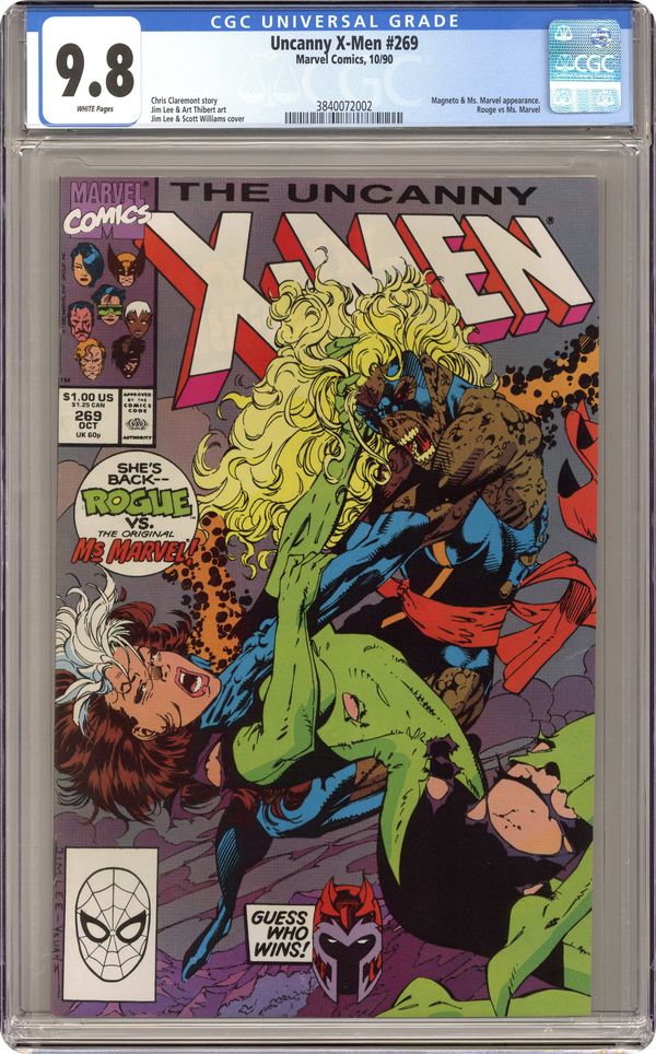 "Rogue Redux!" Story by Chris Claremont. Art by Jim Lee and Art Thibert. Cover by Jim Lee. Rogue battles the original Ms. Marvel for the right to be. And no matter which one of them wins...Magneto wins! Meanwhile on the far side of the universe, celestial scale teleporter Lila Cheney comes face-to-face with ultimate evil. 36 pgs. Cover price $1.00. Grade: CGC 9.8 explanation of grade Condition: Used (collectible)