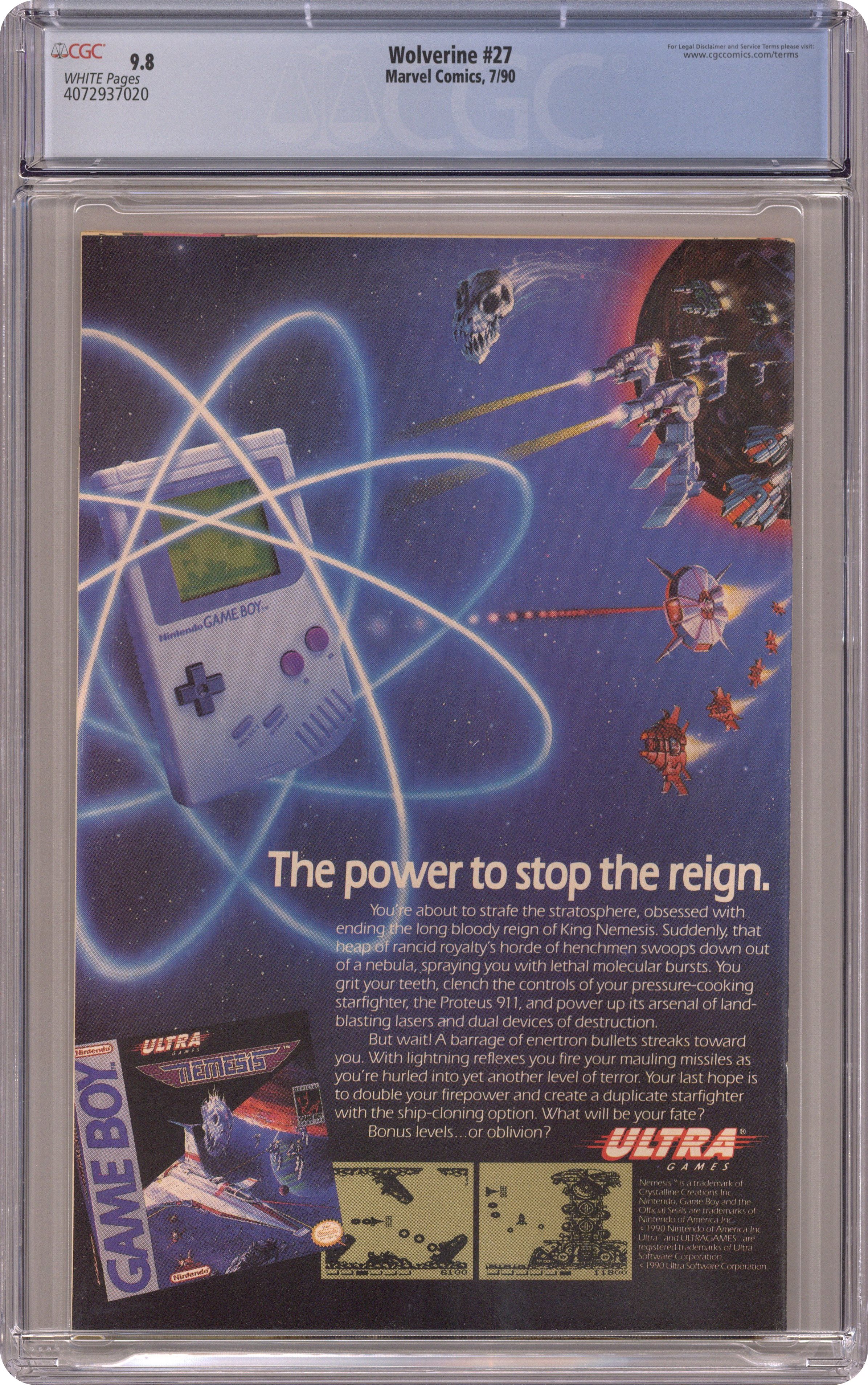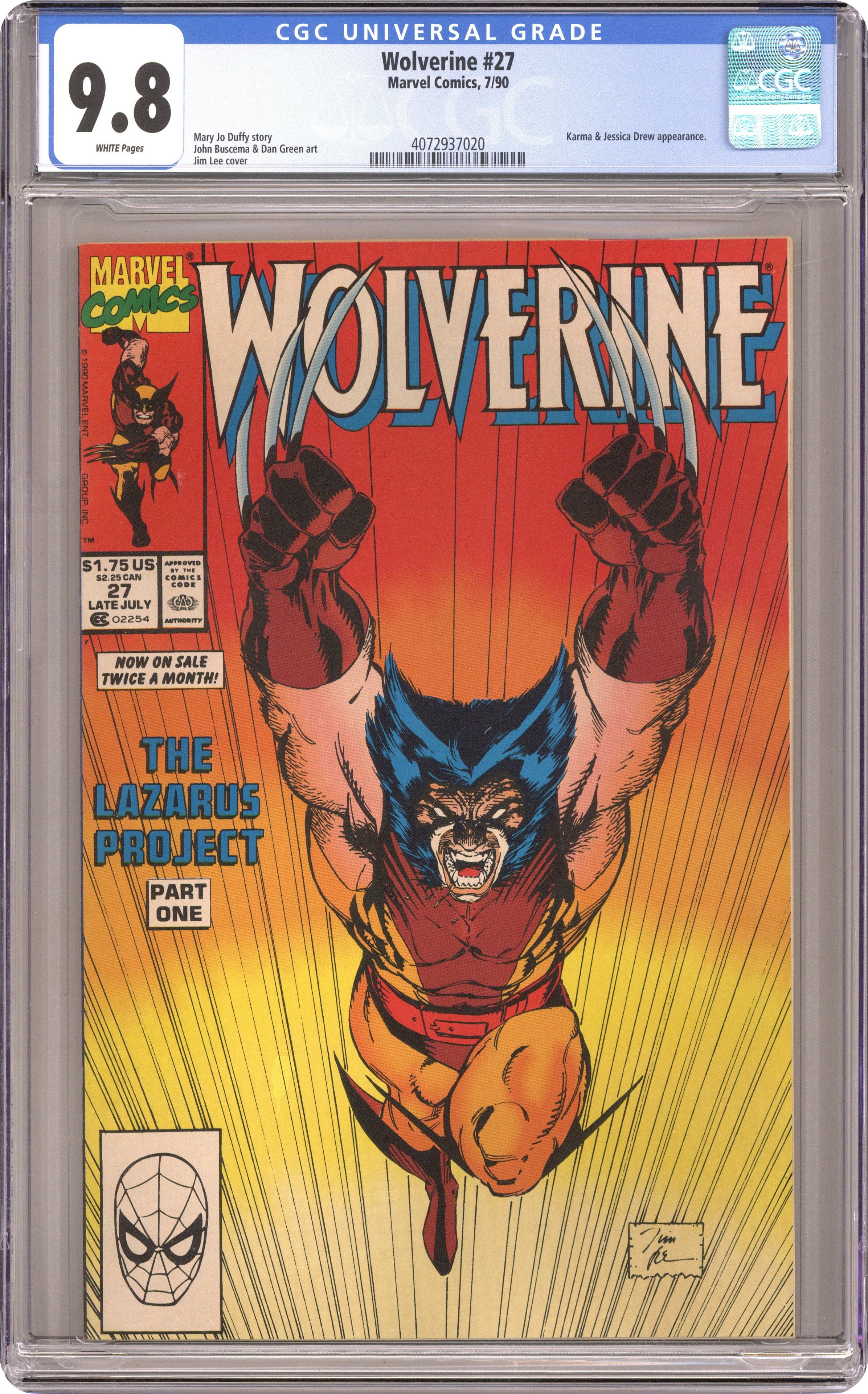 Direct Edition. The Lazarus Project: Part 1 of 4 - "Predators and Prey!" Written by Jo Duffy. Art by John Buscema and Dan Green. Cover by Jim Lee. A mysterious broker makes a deal with Coy to complete the nefarious Lazarus Project. Meanwhile, deep inside the Baron's palace, Wolverine and Jessica Drew discover brand new threat. 32 pages, FC Cover price $1.75. Grade: CGC 9.8 explanation of grade Condition: Used (collectible)