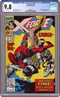 Direct Edition. Cover pencils by Greg Capullo, inks by Harry Candelario. To The Pain, script by Fabian Nicieza, pencils by Greg Capullo, inks by Al Milgrom; X-Force rescues Sunspot who joins the team; Cable rips through Deadpool and Tolliver to free the real Domino (Up to this point, Domino has been a shapeshifter named Vanessa in Tolliver's employ); Cable next appears in Cable: Blood and Metal #1. 36 pgs. $1.25. Cover price $1.25. Grade: CGC 9.8 explanation of grade Condition: Used (collectible)