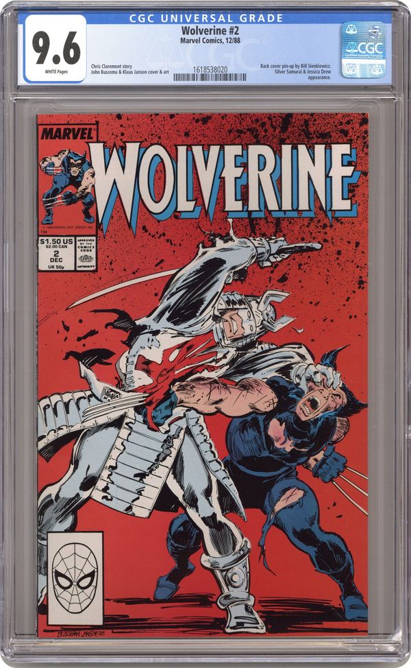 Direct Edition. Part 2 of 3 -"Possession is the Law!" Written by Chris Claremont. Art by John Buscema and Klause Janson. It seems everyone wants the Muramasa Sword, including Wolverine's old foe, the Silver Samurai. Bad thing is Jessica Drew (former and future Spider-Woman) controls the sword and is possessed by its dark power. Bill Sienkiewicz art on back cover. 32 pages, FC Cover price $1.50. Grade: CGC 9.6 explanation of grade Condition: Used (collectible)