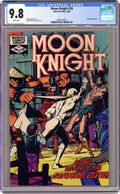 "The Slayer's Elite!" Written by Doug Moench, with art by Bill Sienkiewicz and Steve Mitchell. Cover by Bill Sienkiewicz. Moon Knight is in Jerusalem preparing to take on Nimrod Strange and his army of anarchists, but Nimrod gets the jump on him and sends a trio of deadly assassins to finish him off. 32 pages, FC. Cover price $0.75. Grade: CGC 9.8 explanation of grade Condition: Used (collectible)