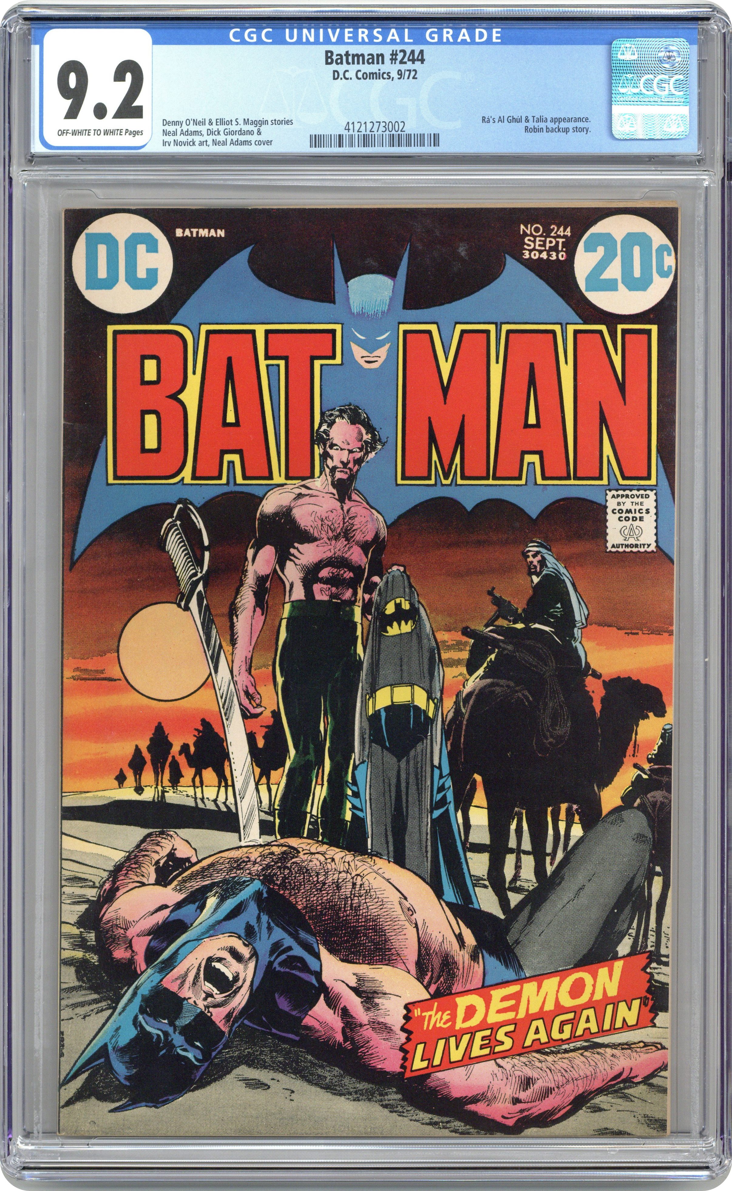 Ended Jul 13 2023 Winning Bid $405 Ra's Al Ghul is back, and with a vengeance. Can Batman defeat the Demon in a one-on-one duel to the death? "The Demon Lives Again!" Talia appearance. Script by Denny O'Neil, pencils by Neal Adams, inks by Dick Giordano. Robin stars in the solo adventure "Teen-Age Trap!" Script by Elliot Maggin, pencils by Irv Novick, inks by Giordano. 36 Pages, Full Color. Cover price $0.20. Grade: CGC 9.2 explanation of grade Condition: Used (collectible)