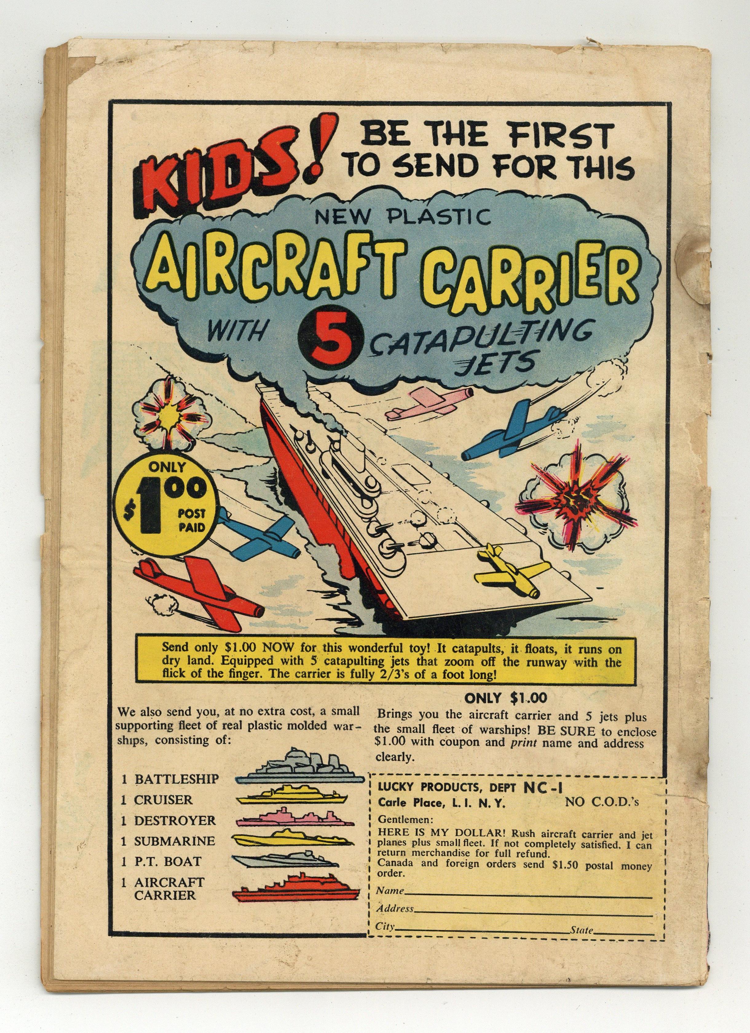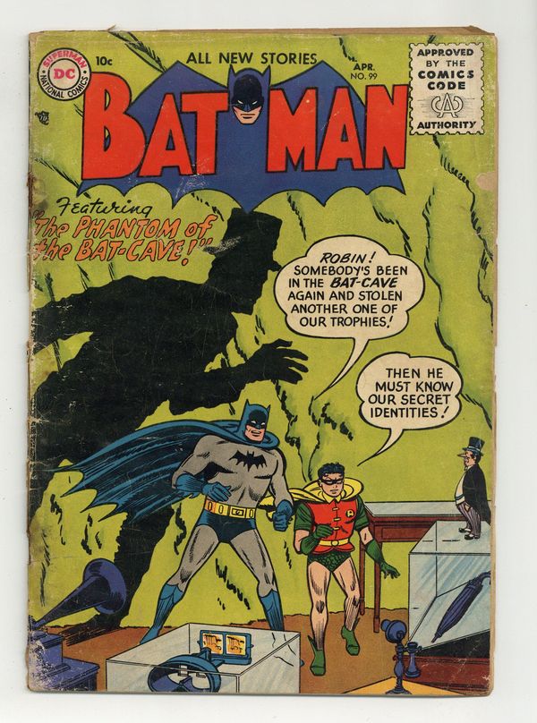 Cover pencils by Win Mortimer, inks by Stan Kaye. The Penguin's first Earth-1 appearance in "The Golden Eggs!", script by Bill Finger, pencils by Sheldon Moldoff, inks by Charles Paris; Batman must stop the Fowl Felon's latest crime spree, which is based on the type of birds hatched from eggs. One-page Casey the Cop story by Henry Boltinoff. "Batman--Frontier Marshall," script by Edmond Hamilton, pencils by Sheldon Moldoff, inks by Charles Paris; Attempting to refute a newspaper article from the frontier days that claims he once used a gun, Batman travels back in time to investigate the article in more depth. It's Fun to Belong! public service announcement with Binky, script by Jack Schiff, art by Win Mortimer. One-page Jerry the Jitterbug story by Henry Boltinoff. Legal Lawbreakers article by John Mallory. "The Phantom of the Bat-Cave!", script by Edmond Hamilton, pencils by Sheldon Moldoff (as Bob Kane), inks by Charles Paris; Batman is puzzled when a trophy from a case he just completed disappears and is replaced by another item...right in the confines of the Bat-Cave; When this happens again and again, Batman fears the worst: a crook has discovered the location of the Bat-Cave! 36 Pages, Full Color. Cover price $0.10. Grade: FR 1.0 explanation of grade Condition: Used (collectible)