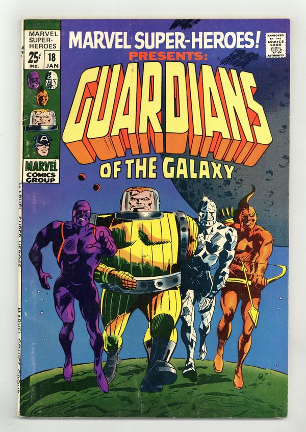 Ended Nov 20 2023 Winning Bid $116 Giant-size issue. Origin and 1st appearance of the Guardians of the Galaxy. Script by Arnold Drake, pencils by Gene Colan, inks by Mike Esposito (as Mickey Demeo). The remainder of the issue contains Golden Age reprints: the Sub-Mariner ("Courage"); and the All Winners Squad featuring Miss America, the Human Torch, and Captain America (from All Winners 21). Letter to the editor from comics writer Steven Grant. Colan cover pencils. Cover price $0.25. Grade: VG+ 4.5 explanation of grade Condition: Used (collectible)