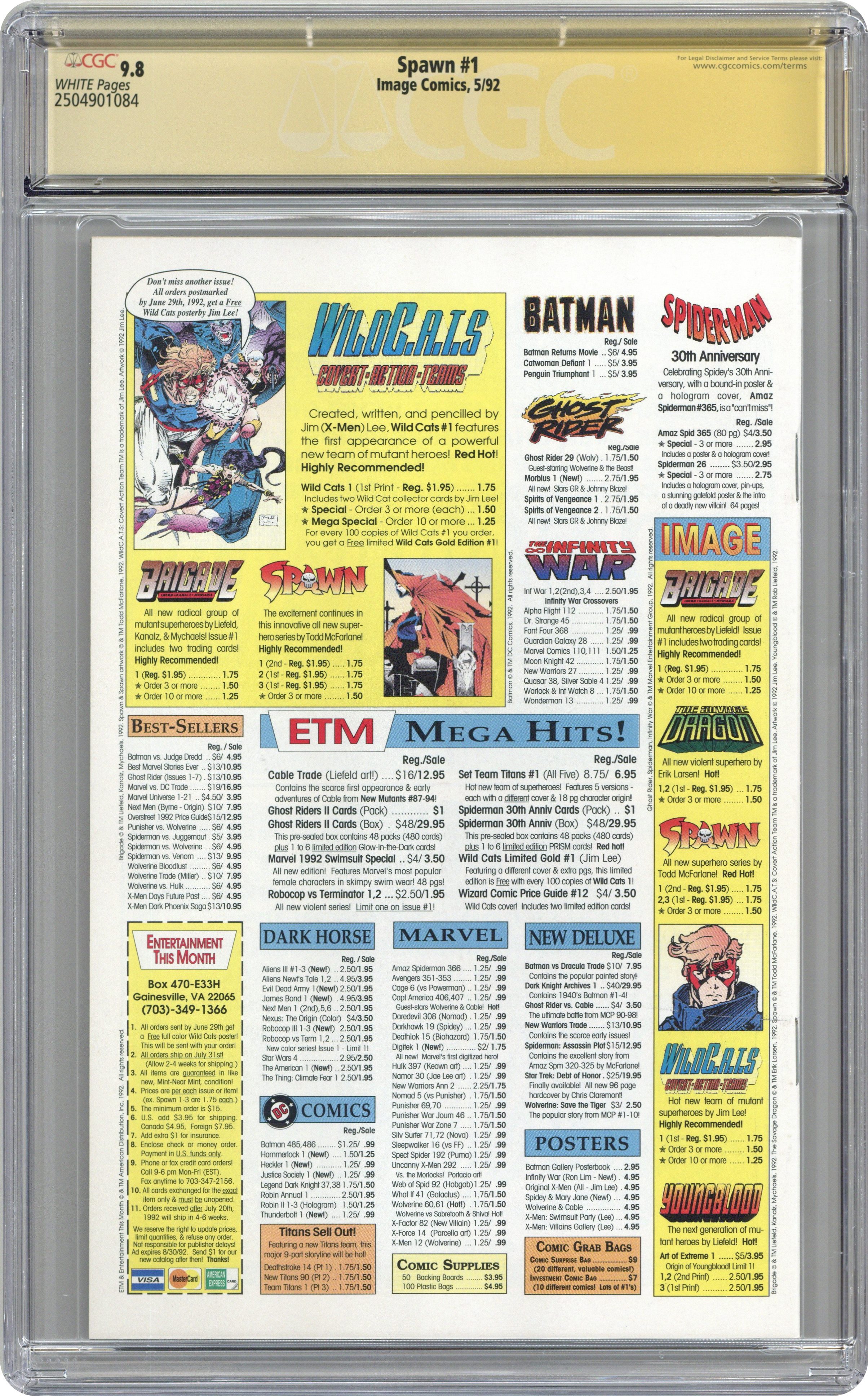 Spawn (1992 Image) 1A.D CGC 9.8 SS Todd McFarlane Direct Variant