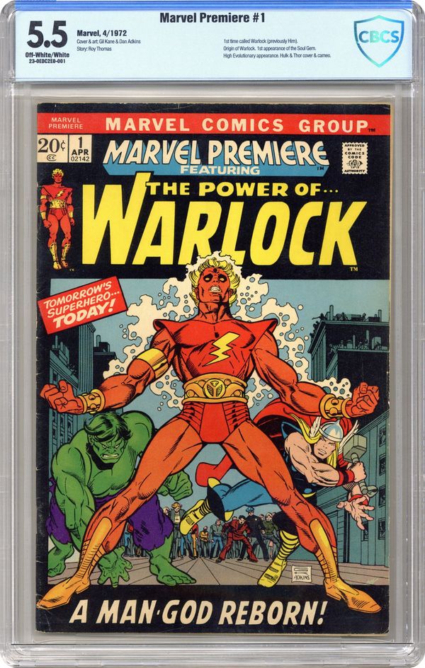 Origin of Warlock and Counter-Earth in "And Men Shall Call Him Warlock!" Script by Roy Thomas, pencils by Gil Kane, inks by Dan Adkins. This is the first appearance of Warlock, who was previously the character "Him" in Fantastic Four (see issues 66 and 67) and Thor (issues 165, 166) comics. High Evolutionary guest stars. Brief appearances by the Hulk and Thor. Kane/Adkins cover. Cover price $0.20. Grade: CBCS 5.5 explanation of grade Condition: Used (collectible)