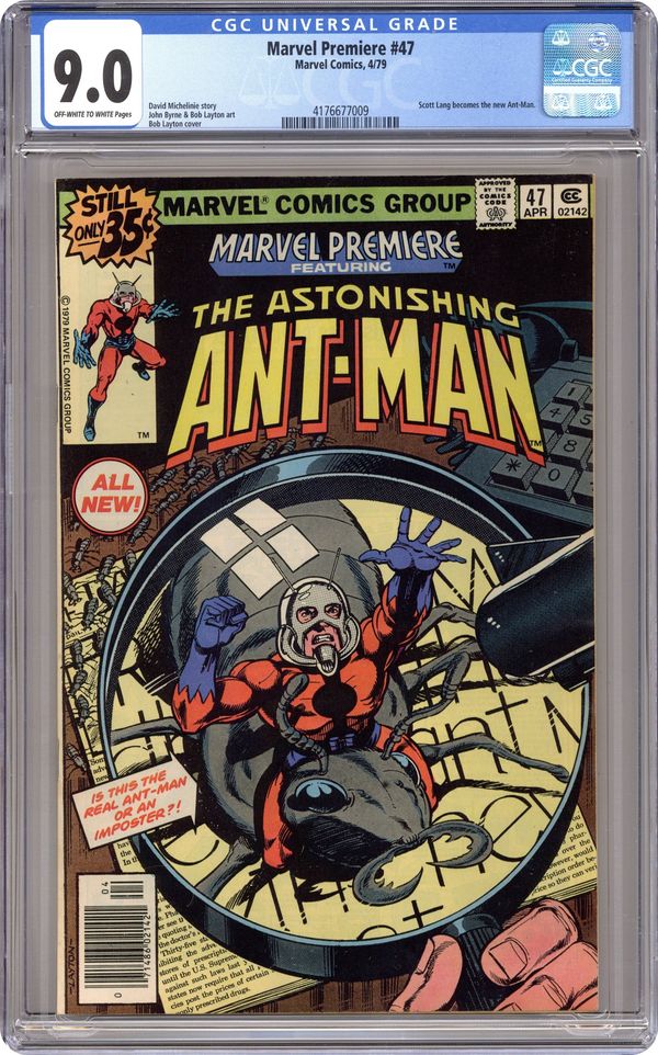 Ended Feb 6 2024 Winning Bid $206 Cover art by Bob Layton. First Scott Lang as Ant-Man in "To Steal An Ant-Man!", script by David Michelinie, pencils by John Byrne (breakdowns) and Bob Layton (finished art), inks by Bob Layton; What happens when Scott Lang, former electrician to the Avengers, steals Hank Pym's shrinking particles?; And why has this ex-con reverted back to his thieving ways?; Check out Scott Lang, Ant-Man, suited up for the first time! 36 pgs., full color. Cover price $0.35. Grade: CGC 9.0 explanation of grade Condition: Used (collectible)