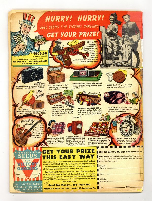Ended Jul 18 2023 Winning Bid $160 Cover pencils by Jack Kirby, inks by Joe Simon. Crime Carnival!, script and pencils by Jack Kirby, inks by Joe Simon; Sandman and Sandy must solve a series of unusual crimes being committed by members of the Mammoth Circus, who seem to always elude members of the Police with a getaway car that converts into a truck. The Doom From the Skies, script by Gardner F. Fox, art by Emil Gershwin. Riddle of the Rodeo starring Shining Knight, script by Ruth Lyons Kaufman [as Bunny Lyons], art by Louis Cazeneuve. The Adventure of the Runaway Calculating Machine starring Genius Jones, script by Alfred Bester, art by Stan Kaye. The Adventure of the Animal Assassins starring Manhunter, script by Jack Kirby, art by Pierce Rice. The Last Time They Saw Paris starring Mike Gibbs, Guerilla, script by Joe Samachson, art by Irving Tirman. 68 Pages, Full Color. Cover price $0.10. Grade: GD 2.0 explanation of grade Condition: Used (collectible)