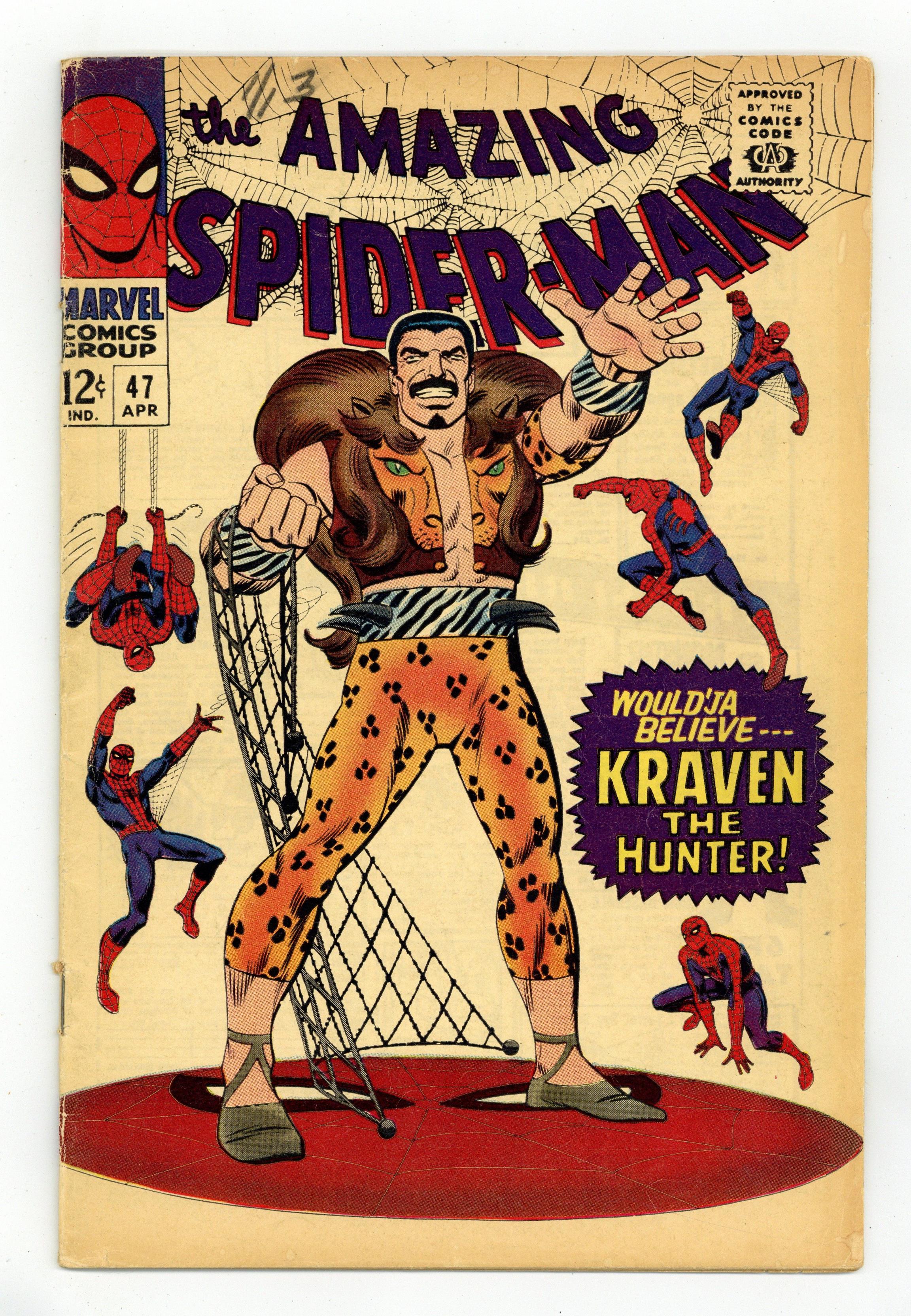 Cover by John Romita Sr. "In the Hands of the Hunter," script by Stan Lee, art and cover by John Romita Sr.; Kraven the Hunter wants cash from Norman Osborn for attacking Spider-Man; since Norman is out of town, Kraven kidnaps Norman's son, Harry, at a party; Spider-Man appears, and he and Kraven fight, but when Norman shows up he can't remember who Kraven is, so doesn't pay him the money; Kraven escapes while Spidey saves Norman. Reprinted in Marvel Tales # 33 and 187. 36 pages, full color. Cover price $0.12. Grade: VG 4.0 explanation of grade Condition: Used (collectible)