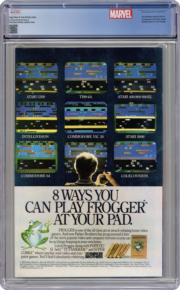 Ended Jun 19 2023 Winning Bid $270 Newsstand Edition. First appearance of Spider-Man's new black (alien symbiote) costume in "Homecoming!" Plot by Roger Stern. Script by Tom DeFalco. Pencils by Ron Frenz (breakdowns) and Brett Breeding (finishes). Cover by Ron Frenz and Klaus Janson. One of the landmark issues of the Amazing Spider-Man! With a brilliant flash of light in Central Park, the wondrous wall-crawler is back! And he looks a whole lot different! Wow, a new costume! What happened during the Secret Wars on the Beyonder's world? The ominous truth will be revealed to both the readers and the web-slinger in the days and weeks ahead! Cameo appearances by the Black Cat, Dr. Curt Connors, J. Jonah Jameson, Joe Robertson , Aunt May, Captain America, Captain Marvel, Hawkeye, Iron Man, Thor, and the Wasp. (Notes: Marvel Age 12 contained sketches of the new costume two months prior to the publication of this issue. Spidey's new costume was also unveiled in Marvel Team-Up 141 and Spectacular Spider-Man 90. The first issue of the (1984) Marvel Super Heroes Secret Wars Limited Series was published the same month as Amazing Spider-Man 252. The web-slinger discovers his new costume in issue 8 of the limited series. The Frenz-Janson cover is a tribute to the iconic cover of Amazing Fantasy 15. This story was reprinted in Marvel Tales 266. The letters page contains a statement of ownership: average print run 470,527; average paid circulation: 241,762. 36 pgs. Cover price $0.60. Grade: CGC 9.4 explanation of grade Condition: Used (collectible)