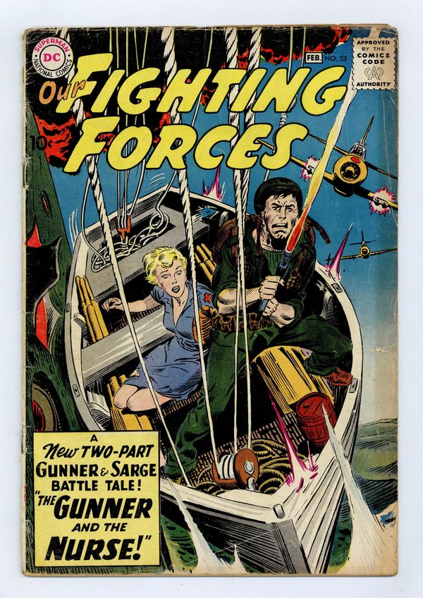 "The Gunner and the Nurse," "Bomber Party" (art by Mort Drucker), and "I Can't Win!" (art by Joe Kubert). Kubert cover. 36 Pages, Full Color. Cover price $0.10. Grade: GD 2.0 explanation of grade Condition: Used (collectible)