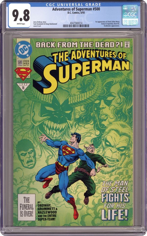 Jonathan Kent refuses to let his son pass from this mortal coil without a spiritual fight in "Life After Death!" Written by Jerry Ordway. Art by Tom Grummett & Doug Hazlewood. Also - 4 page sequences by: Louise Simonson, Jon Bogdanove & Dennis Janke; Roger Stern, Jackson Guice & Denis Rodier; Karl Kesel, Tom Grummett & Doug Hazlewood; Dan Jurgens & Brett Breeding. Cover by Grummett & Hazlewood. Cover price $2.50. Grade: CGC 9.8 explanation of grade Condition: Used (collectible)