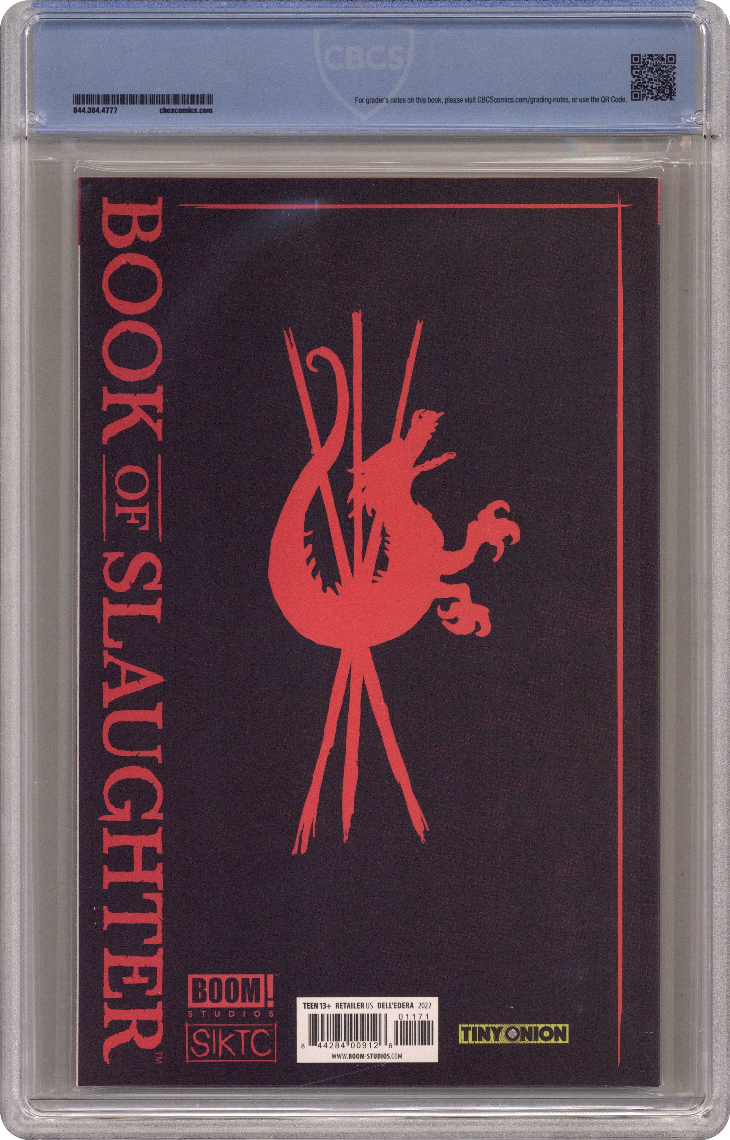 Published Dec 2022 by Boom Studios.Book of Slaughter (2022 Boom) 1TINYONION CBCS 9.8 Dell'Edera Tiny Onion Variant