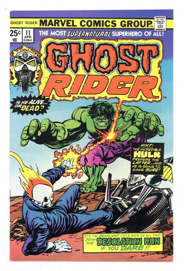 "The Desolation Run!" Guest-starring Hulk. Story by Tony Isabella. Art by Sal Buscema and John Tartaglione. Cover by Gil Kane and Klaus Janson. Johnny Blaze participates in a cross-country race, but when the sinister Inferno tricks the Incredible Hulk into attacking Ghost Rider all hell breaks loose! NOTE: Marvel Value Stamp series A #66: General Ross. Cover price $0.25. Grade: VF 8.0 explanation of grade Condition: Used (collectible)