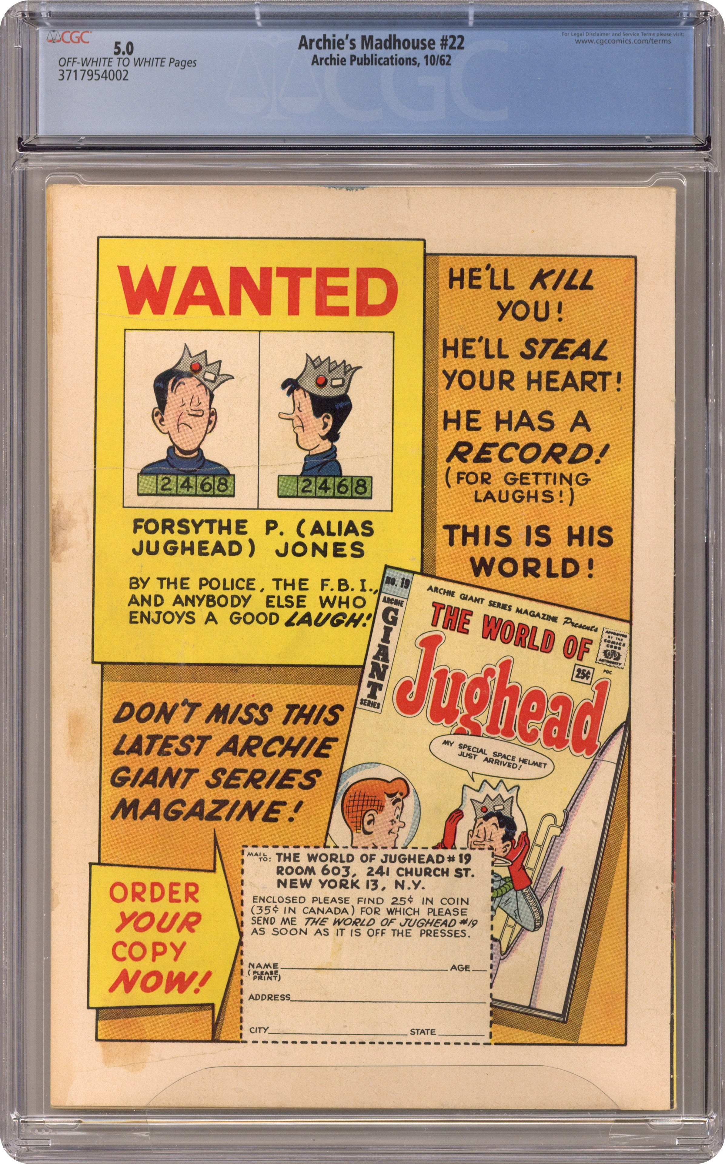Published Oct 1962 by Archie Publications.Archie's Madhouse (1959) 22-12C CGC 5.0