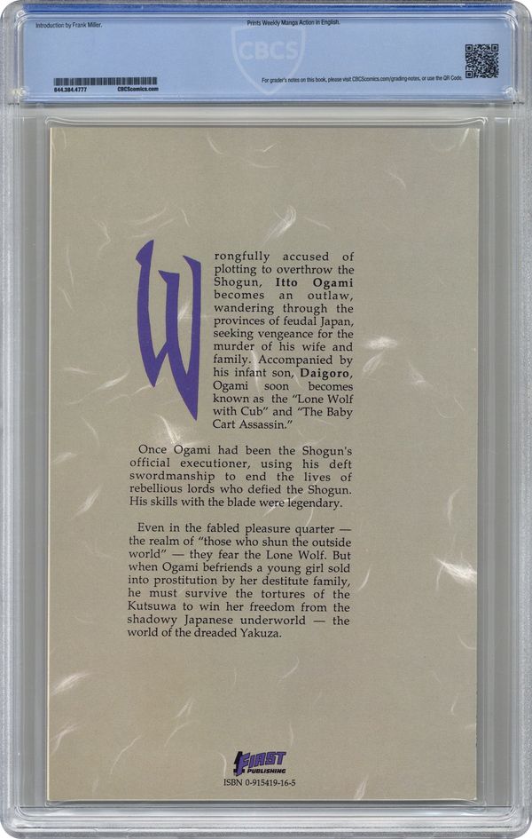 Published Nov 1987 by First Publishing.Lone Wolf and Cub (1987 First) 7 CBCS 9.8