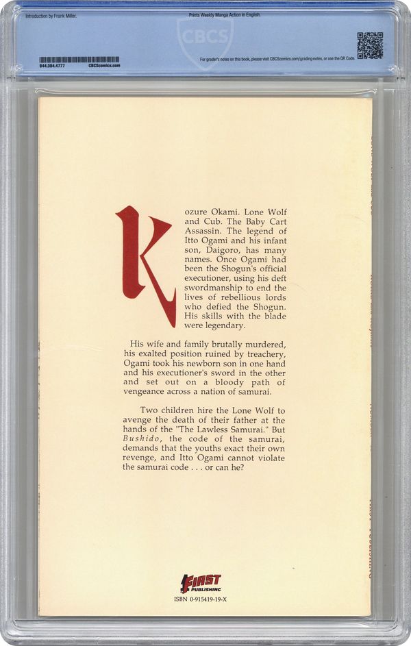 Published Feb 1988 by First Publishing.Lone Wolf and Cub (1987 First) 10 CBCS 9.4
