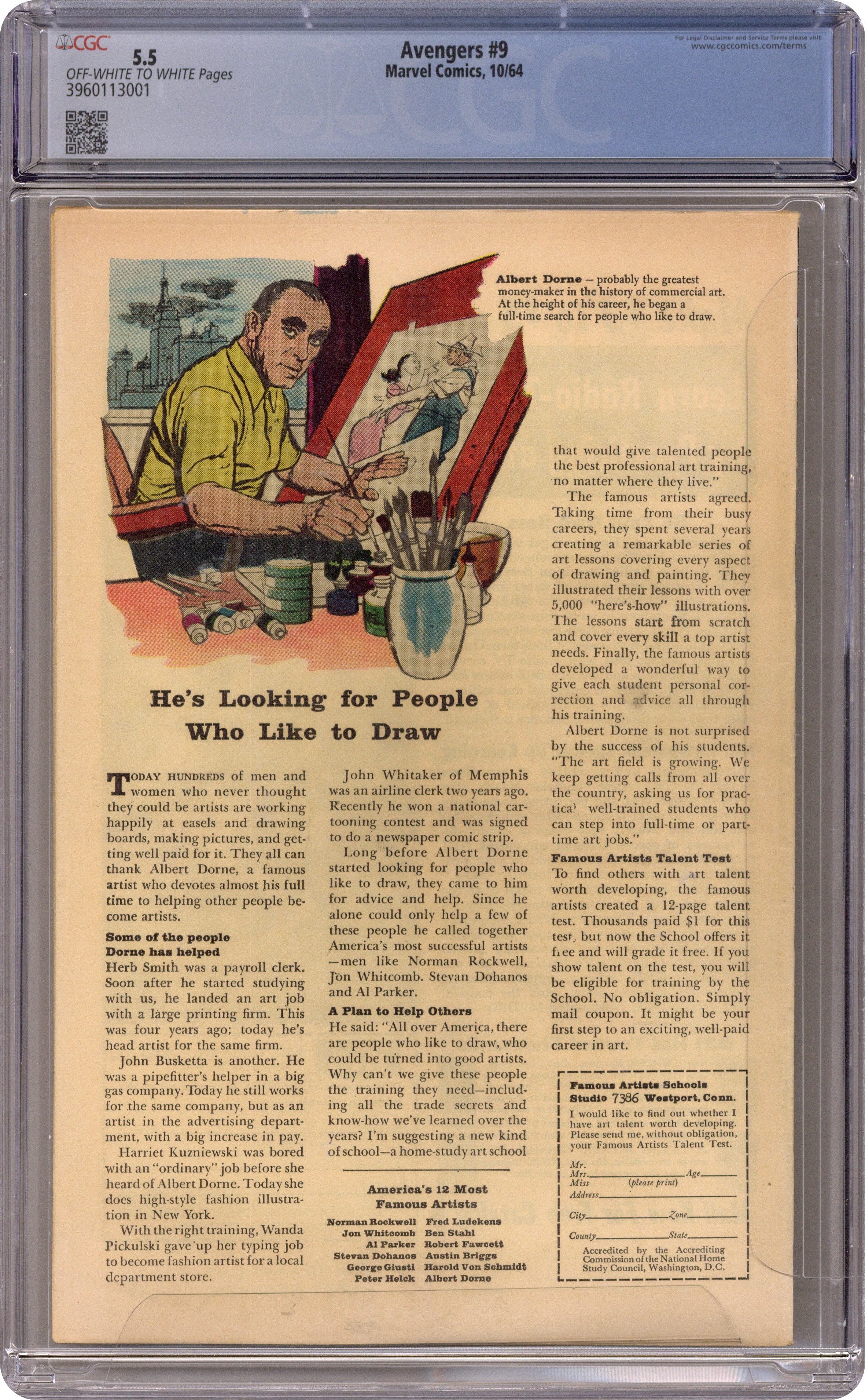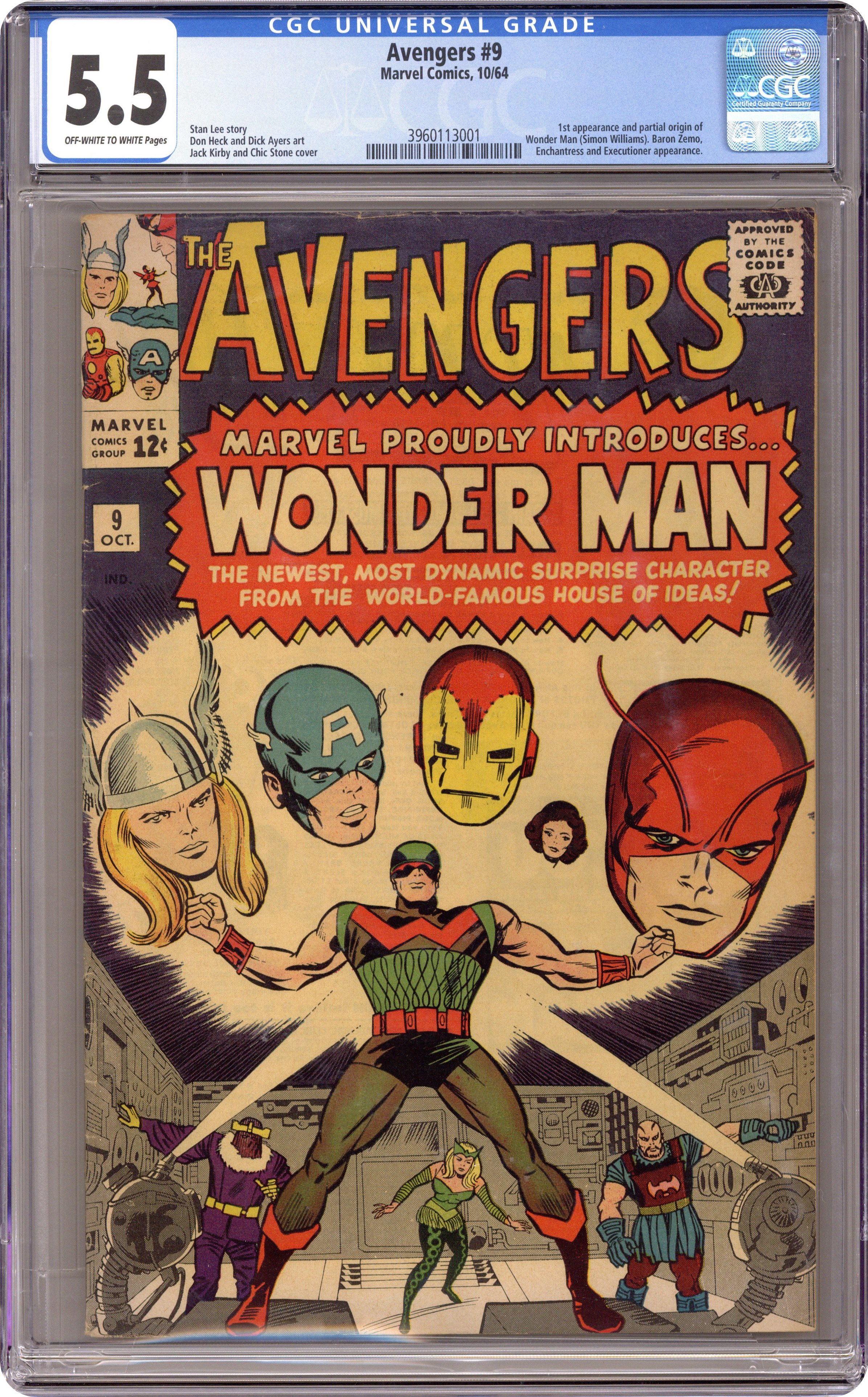 Ended Jan 23 2024 Winning Bid $280 Cover pencils by Jack Kirby, inks by Chic Stone. First appearance of Wonder Man in "The Coming of the... Wonder Man!", script by Stan Lee, pencils by Don Heck, inks by Dick Ayers; Baron Zemo and the Masters of Evil transform Simon Williams into Wonder Man and send him to infiltrate the Avengers; Instead, he winds up allying with them at the cost of his own life. Roster: Captain America, Thor, Iron Man, Giant-Man, and the Wasp. Villains: Executioner, the Enchantress, and Baron Zemo. Cameo appearance by Bucky. 36 pgs., full color. $0.12. Cover price $0.12. Grade: CGC 5.5 explanation of grade Condition: Used (collectible)