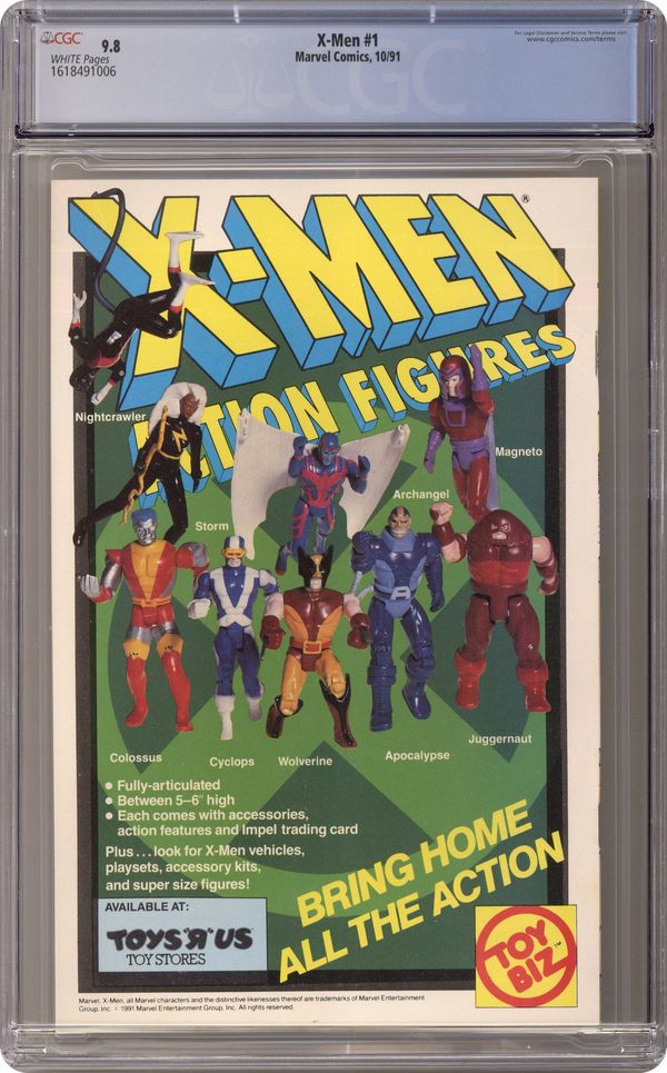 Direct Edition. Cyclops/Wolverine/Iceman cover. Cover pencils by Jim Lee, inks by Scott Williams. Rubicon, script by Jim Lee (Co-Plot) and Chris Claremont, pencils by Jim Lee, inks by Scott Williams; Magneto forms the Acolytes and proclaims Asteroid M a haven for mutants everywhere; But the rest of the world doesn't see it that way; Nick Fury cameo. 2-page pin-up: gallery of X-Men villains. X-Men Sketchbook by Jim Lee. Cover price $1.50. NOTE: Cover C connects to covers 1A, 1B, and 1D to form a single giant image. Cover price $1.50. Grade: CGC 9.8 explanation of grade Condition: Used (collectible)