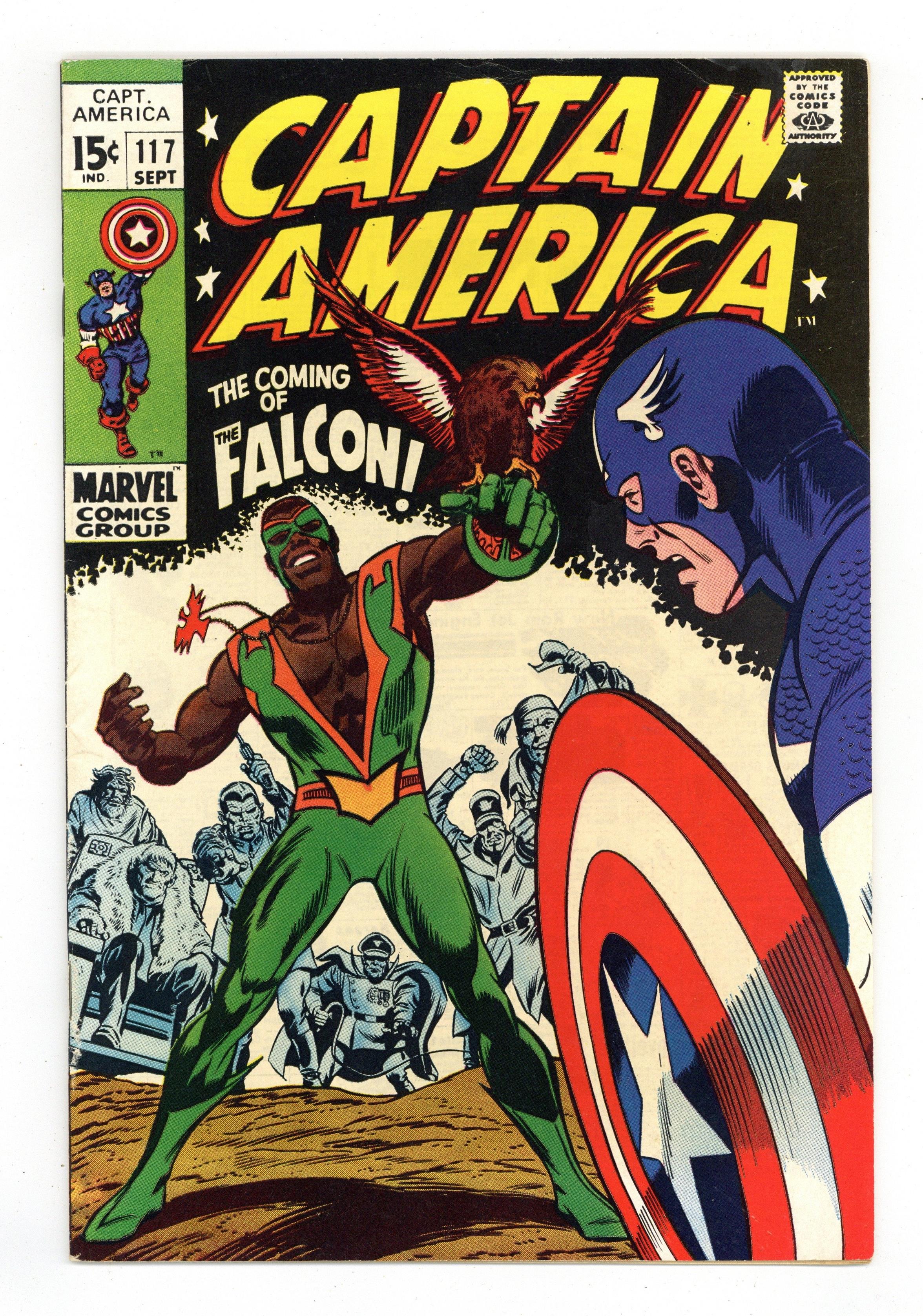 Ended Jan 22 2024 Winning Bid $271 Cover pencils by Gene Colan and John Romita (alterations), inks by Joe Sinnott and John Romita (alterations). First appearance and origin of the Falcon in "The Coming of... the Falcon!", script by Stan Lee, pencils by Gene Colan, inks by Joe Sinnott; With the Red Skull previously having switched bodies with Captain America, the Skull uses the Cosmic Cube to send Cap to the tropical island home of the Exiles; There Cap encounters a falconer from Harlem who had been hired by the Exiles but who is now attempting to help the island natives kick the Exiles from their home; Cap joins forces with the falconer who, with Cap's urging, dons a costume and takes the name the Falcon. Letter to the editor from writer James Van Hise. 36 pgs., full color. $0.15. Cover price $0.15. Grade: FN 6.0 explanation of grade Condition: Used (collectible)