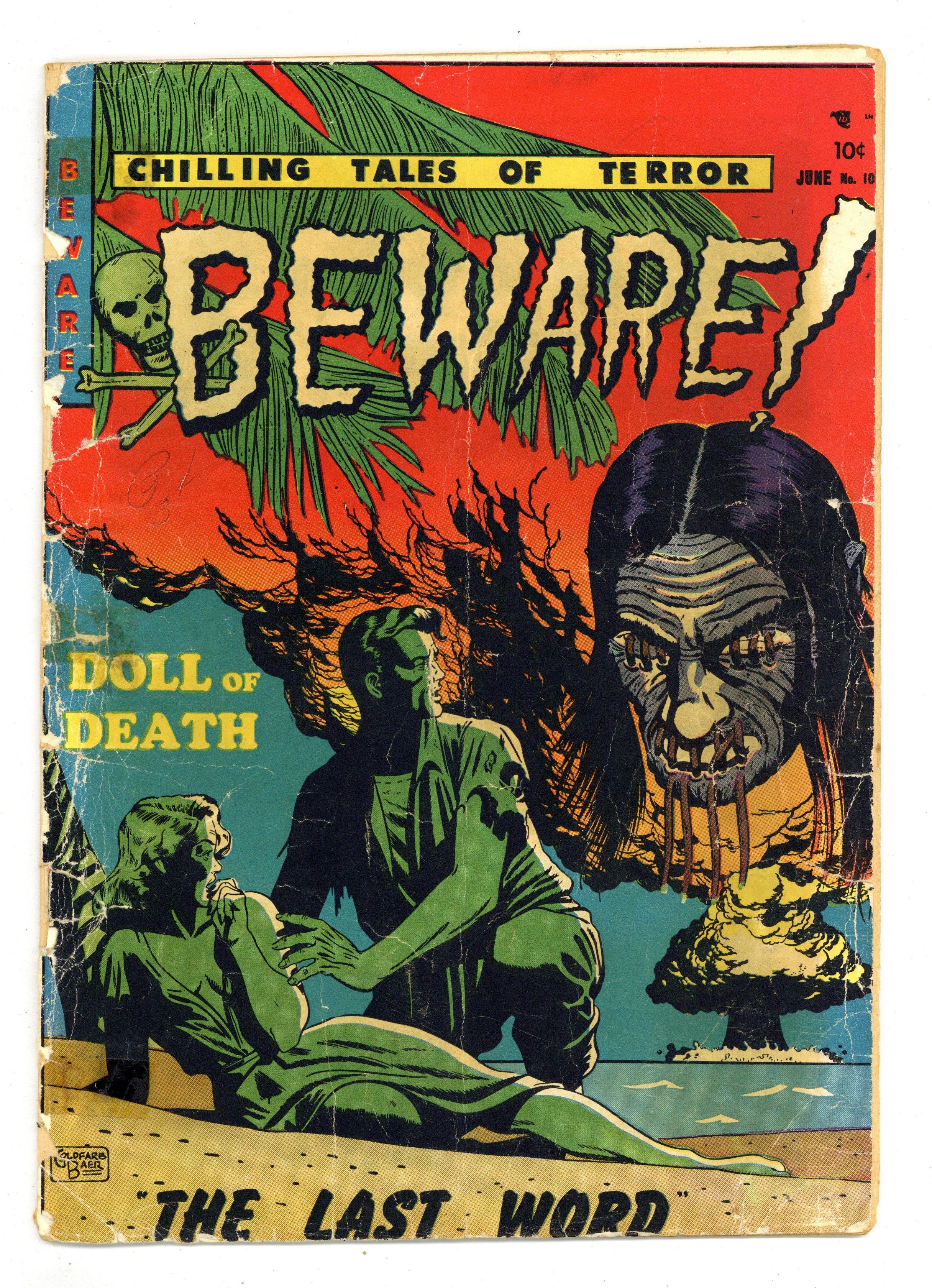 Cover by Ed Goldfarb and Bob Baer. Stories and art by Doug Wildey, Gerald Altman, Vince Napoli, Ernie Bache and Harry Harrison. Violent pre-Code horror comics from Youthful Magazines. Numbering continues from Fantastic (1952) #9. An adaptation of Edgar Allan Poe's classic horror story The Pit and the Pendulum, with early art by Doug Wildey. Denny the ventriloquist believes his dummy Hector is trying to kill him, but Hector is actually under the influence of sinister psychic Hugo. In the far reaches of the Rockies during a blizzard, prospector Fenley admits his crimes to a mysterious visitor. The Pit and the Pendulum; The Last Word; Nightmare!; Death Claims His Own; Doll of Death. 36 pages, Full Color. Cover price $0.10. Grade: PR 0.5 explanation of grade Condition: Used (collectible)